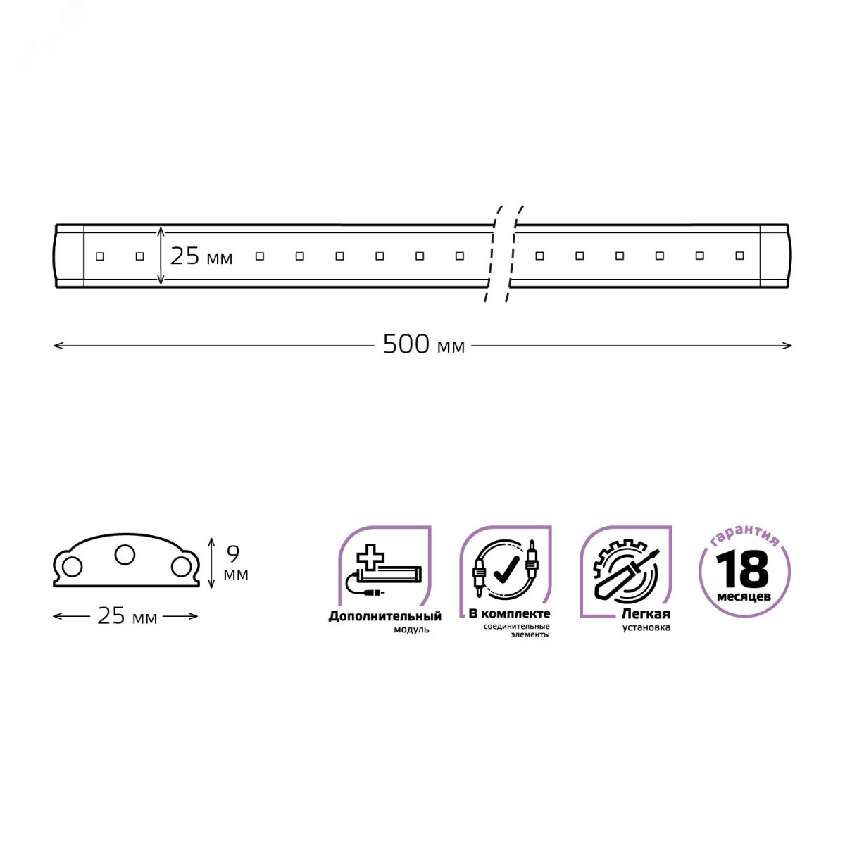 Светильник модульный линейный 6 Вт 600 Лм 4000К 500х25х9 мм IP20 модель F ADD дополнительный модуль Modul Gauss