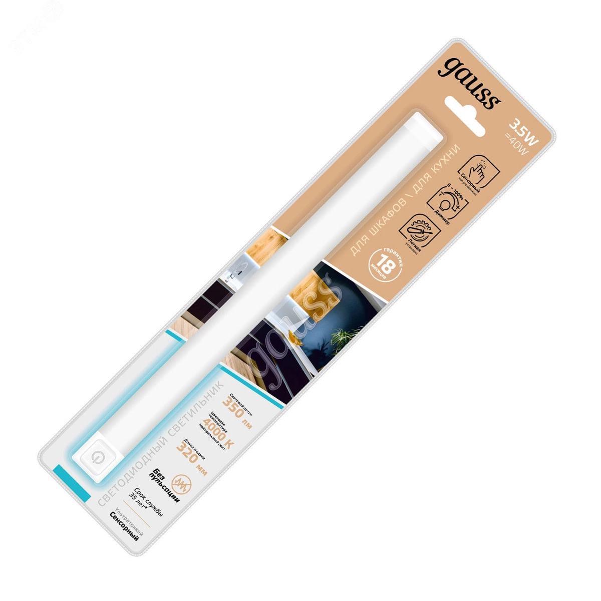 Линейные светодиодные светильники от Gauss - прекрасное решение для подсветки рабочей зоны на кухне, письменного стола, в мастерской или в любом другом пространстве. Сенсорный выключатель позволяет удобно управлять освещением. В зависимости от модели для включения светильника достаточно только приблизиться к нему или произвести легкий взмах рукой или сделать короткое касание к корпусу. Сенсорные светильники Gauss выполнены из алюминия, поэтому обладают легким весом и прочной конструкцией. Светильники различаются по мощности, световому и длиной самого светильника. Особенностью светильников от Gauss является возможность последовательного соединения в линейку нескольких светильников с помощью коннекторов и простая установка – достаточно их приклеить к поверхности с помощью двухстороннего скотча или прикрепить его с помощью металлических скоб. Набор установочных креплений для двух вариантов монтажа входят в комплектацию данного изделия.