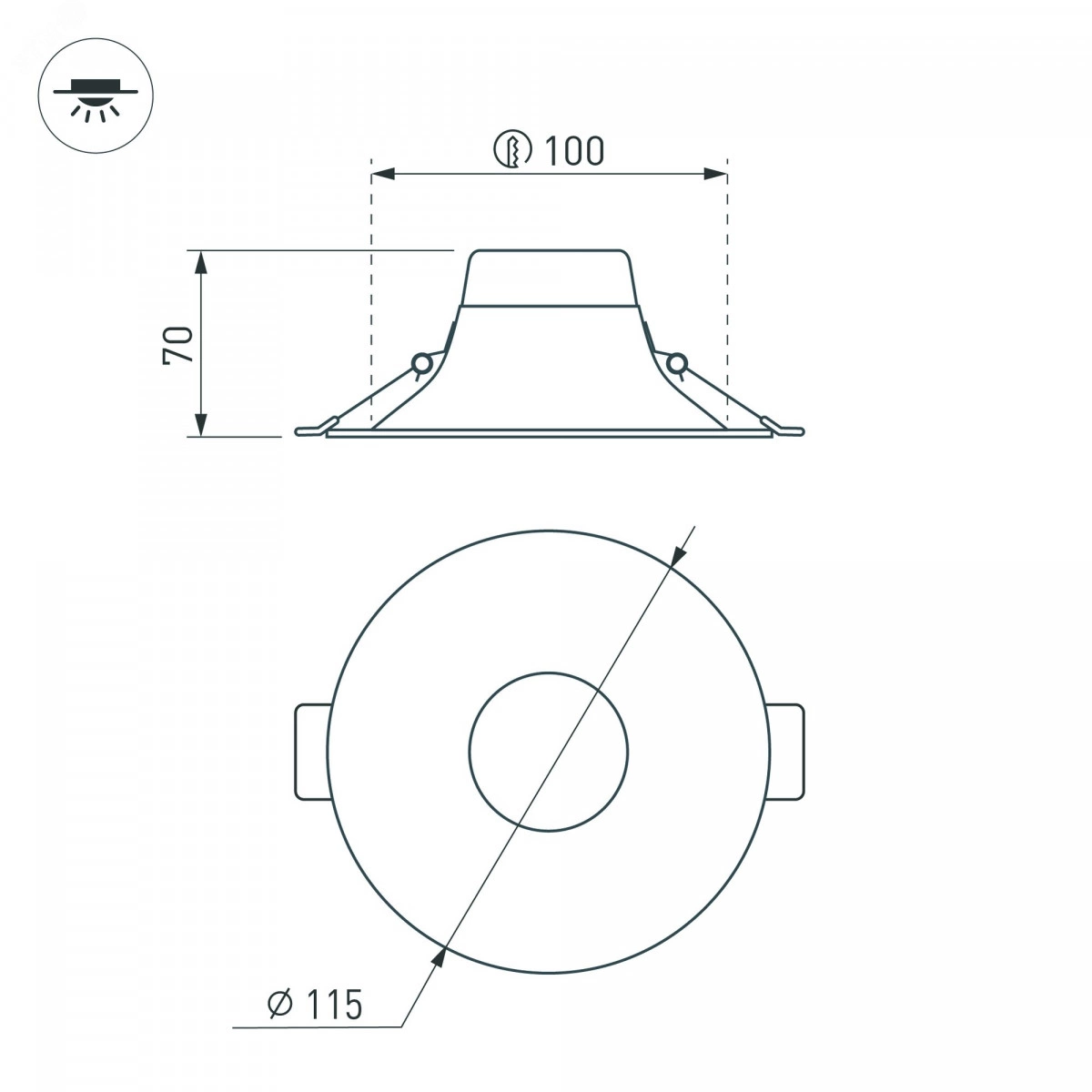 Cветильник светодиодный Downlight круглый встраиваемый 190х65 16W 3000K IP54