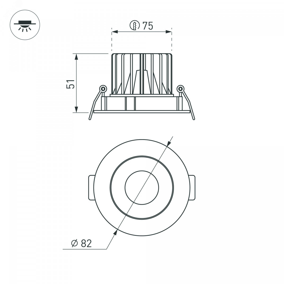 Встраиваемый поворотный светильник даунлайт. Мощность 8 Вт, св. поток 800 лм, 100 лм/Вт, дневной 4000 K, CRI-90, UGR<16, угол 32 градусов , напряжение питания 230 В. Черный круглый корпус из алюминия, степень защиты IP20. Размер - диаметр 82 мм, высота 51 мм. Монтаж встраиваемый, установочное отверстие - диаметр 75 мм. Драйвер 21-42 В, 200 мА, пульсация <2%.