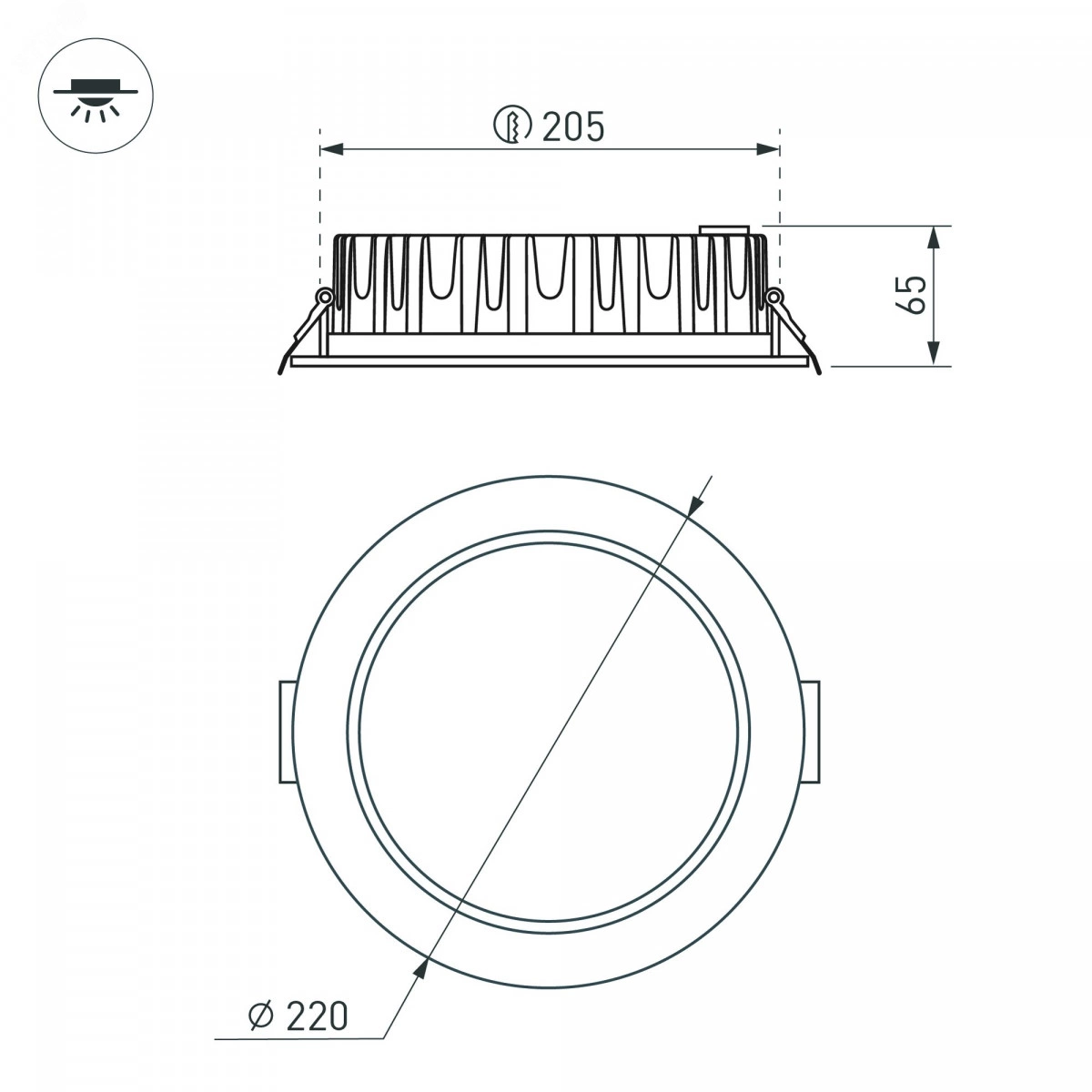 Cветильник светодиодный Downlight круглый встраиваемый 190х65 16W 3000K IP54