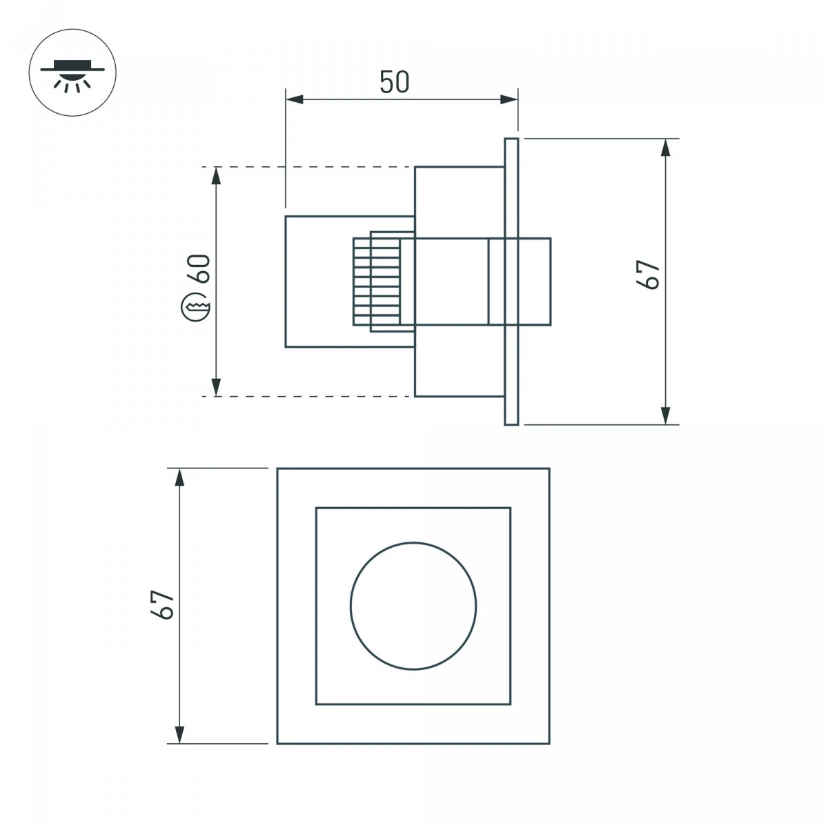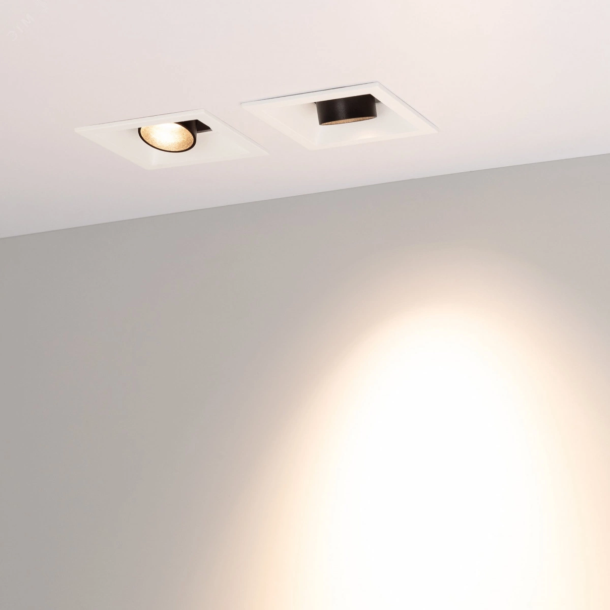 Встраиваемый поворотный светильник. Мощность 3 Вт, св. поток 180 лм, 60 лм/Вт, теплый 3000 K, CRI-98, угол 30 градусов , напряжение питания 230 В. Белый прямоугольный корпус из алюминия, экран PMMA, степень защиты IP20. Размер - длина 67 мм, ширина 67 мм, высота 50 мм. Монтаж встраиваемый, установочное отверстие длина 60 мм, ширина 60 мм. Драйвер 3-12 В, 500 мА, пульсация <1%.