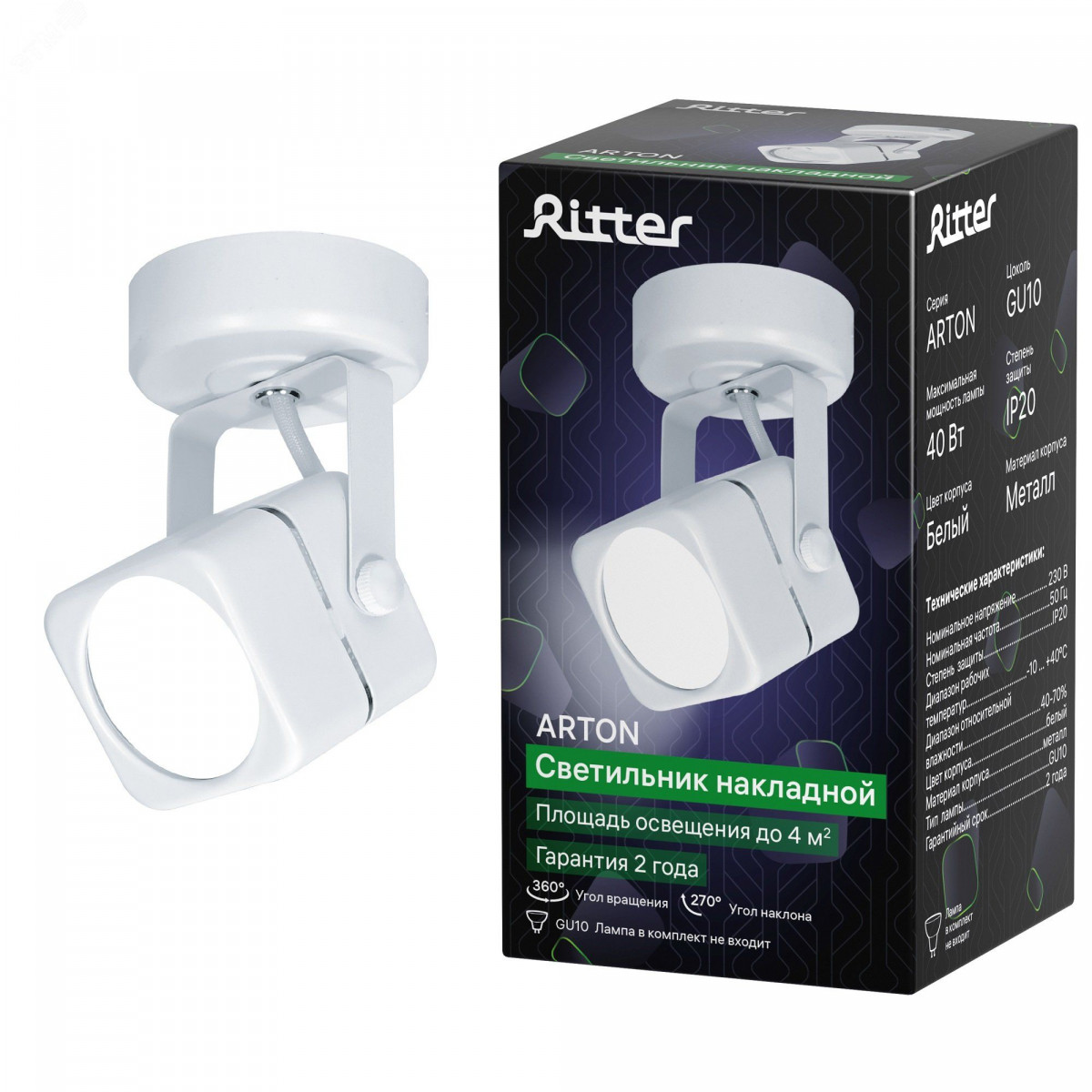 Светильник накладной, ARTON, поворотный, квадрат, 60x60x60мм, GU10, металл, белый, 59960 9, Ritter