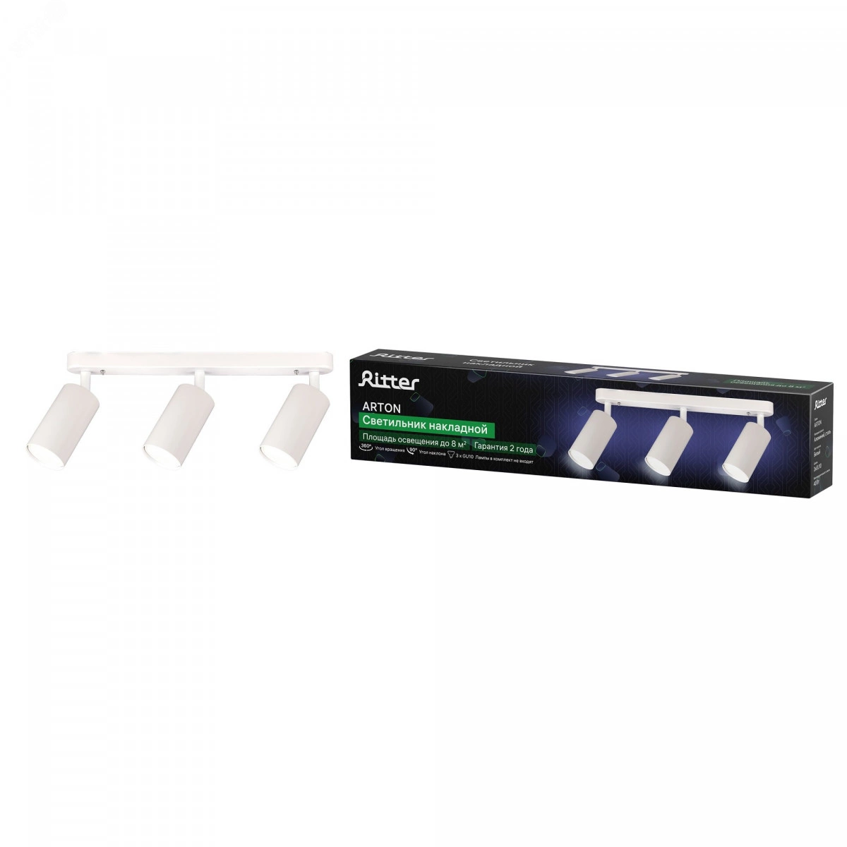 Светильник накладной, ARTON, поворотный, цилиндр, 350x55x160мм, 3хGU10, алюминий, белый, 59990 6, Ritter
