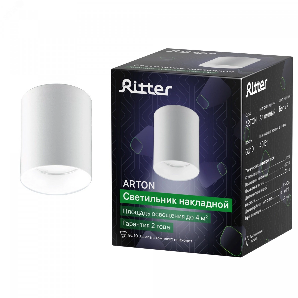 Светильник накладной, ARTON, цилиндр, 80х80х100мм, GU10, алюминий, белый, 59976 0, Ritter