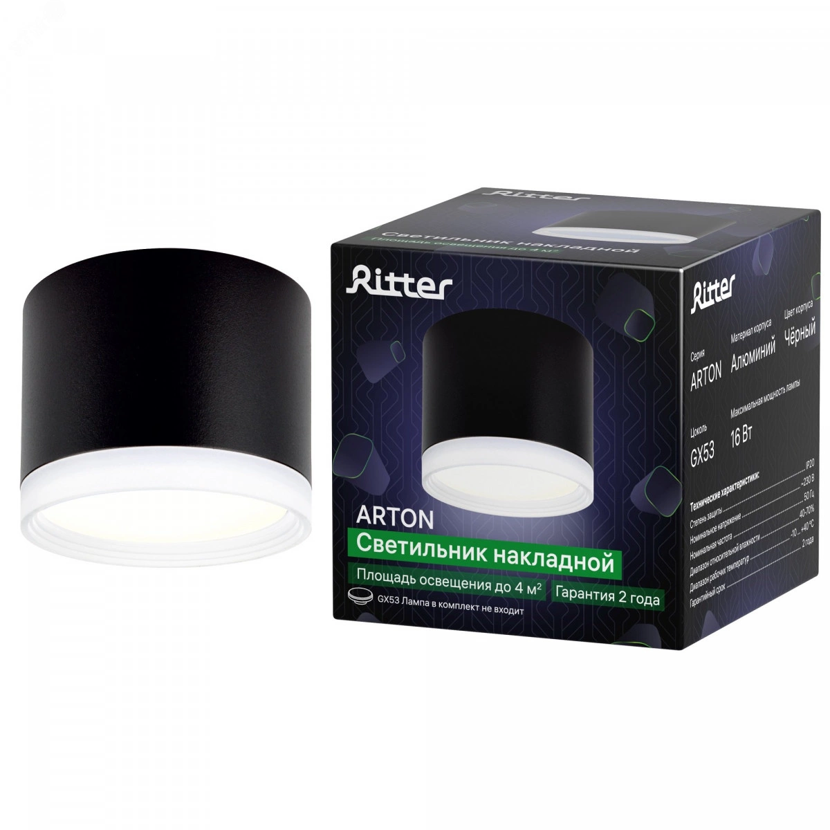 Светильник накладной, ARTON, цилиндр, 85х85х70мм, GX53, алюминий/стекло, черный, 59947 0, Ritter