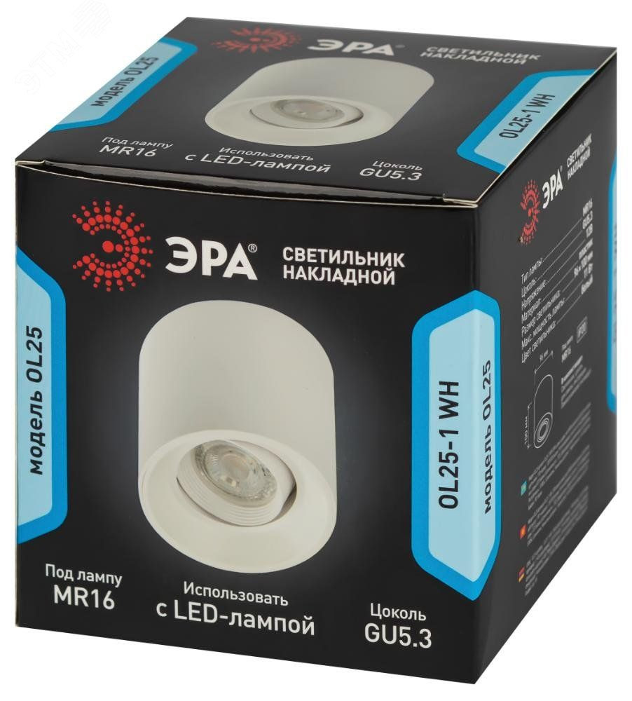Накладной светильник OL25-1 WH прекрасно дополняет помещение стильным акцентным освещением. Лампа располагается глубоко в светильнике, обеспечивая мягкий неслепящий свет. Имеет поворотный механизм. Цоколь для источника света GU5.3, напряжение питания 12В, материал пластик., цвет светильника белый, размер 96 мм, максимальная мощность лампы 11Вт, степень защиты IP20..