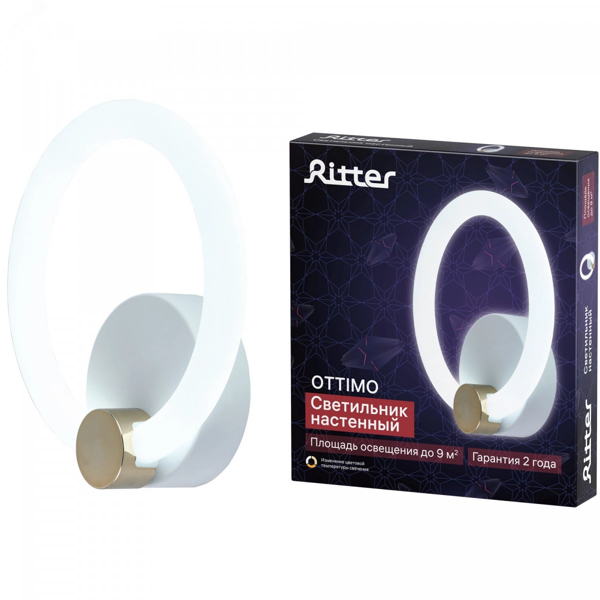 Светильник настенный светодиодный бра, OTTIMO, 200x75x190, 20Вт, 2700K/4200K/6400K, 9м, белый/золото, 51610 5, Ritter