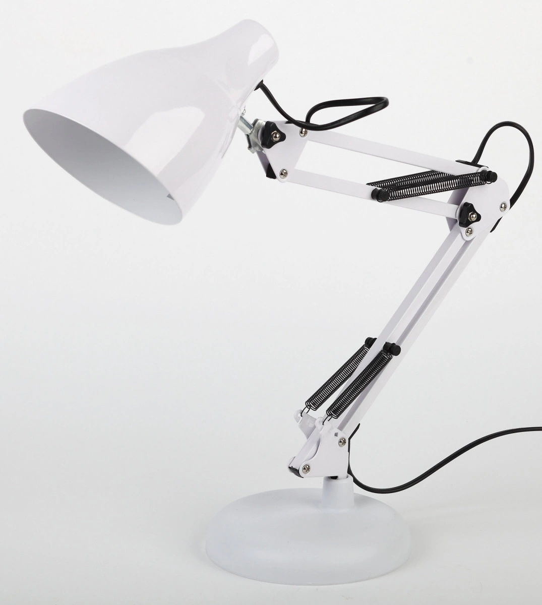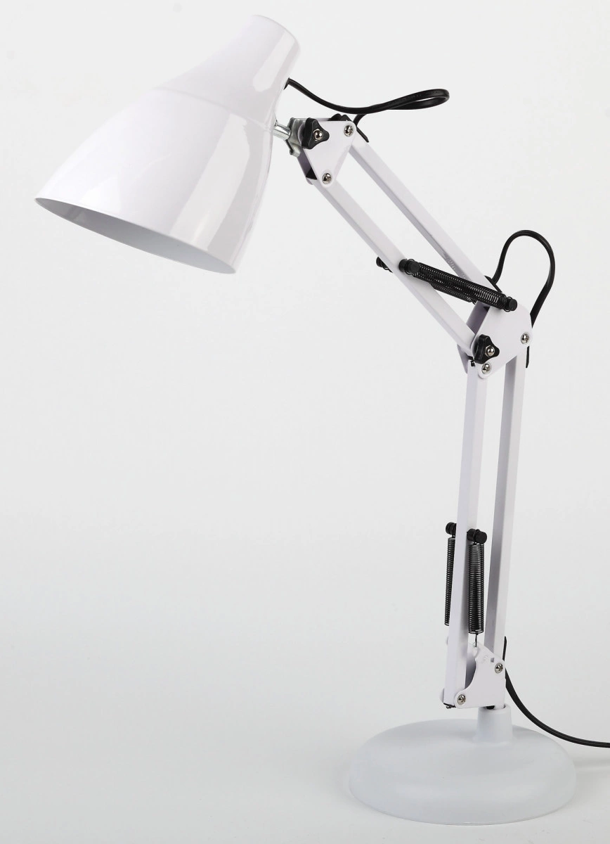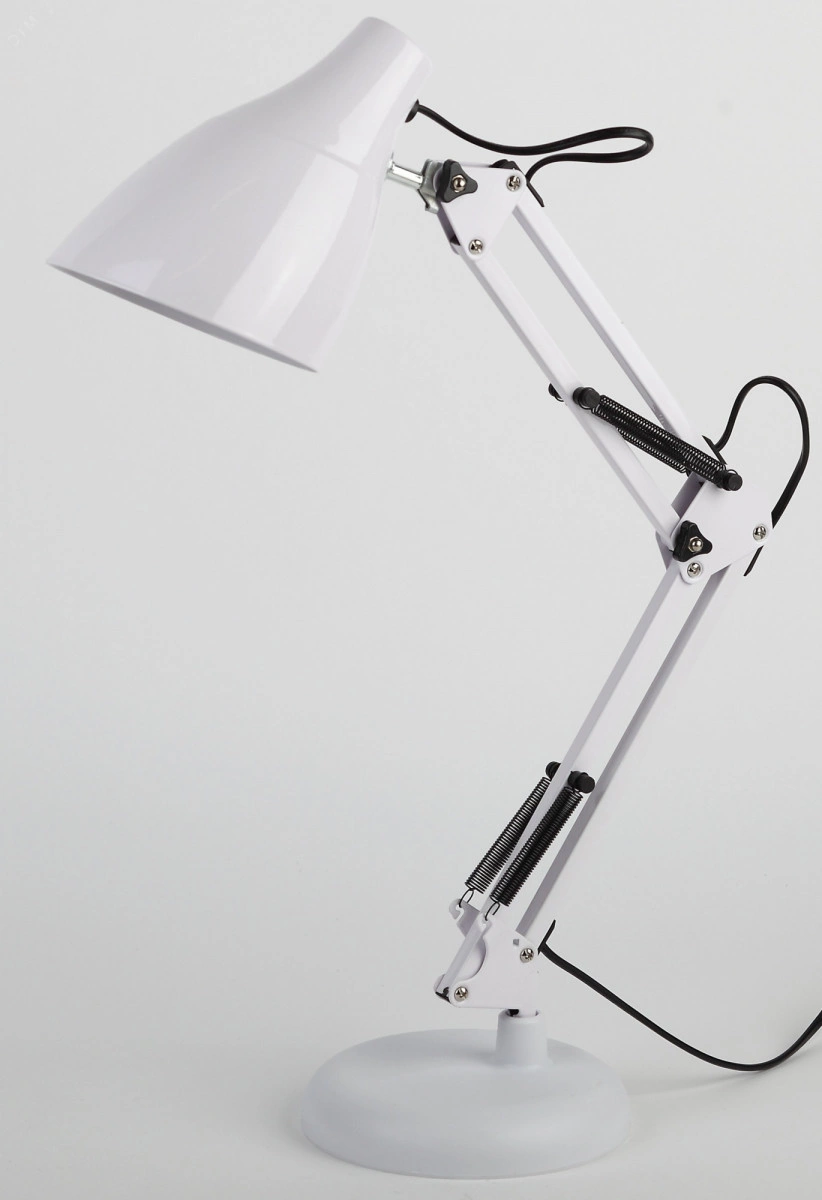 Настольный светильник ЭРА N-123-Е27-40W-W трендового дизайна с классической конструкцией может использоваться с разными источниками света - лампой накаливания, компактной люминесцентной лампой (КЛЛ) или светодиодной (LED) лампой. Выключатель на проводе. Устойчивое основание. Высота плафона регулируется двухсекционной сгибающейся стойкой, направление света - поворотом и наклоном плафона в любом направлении. Лампа в комплект не входит.