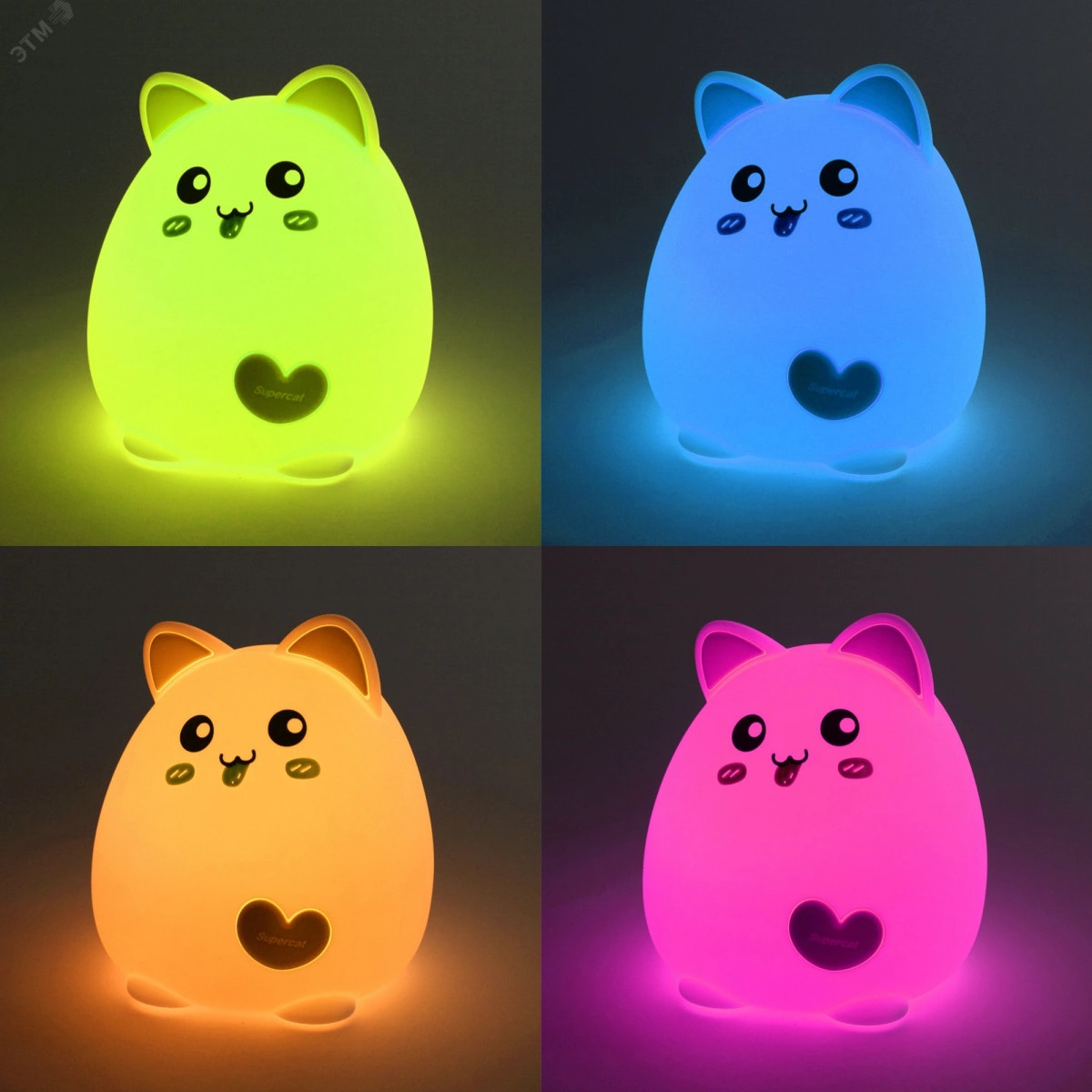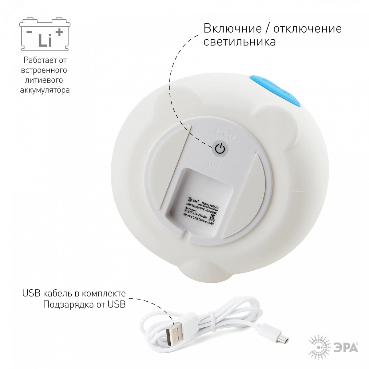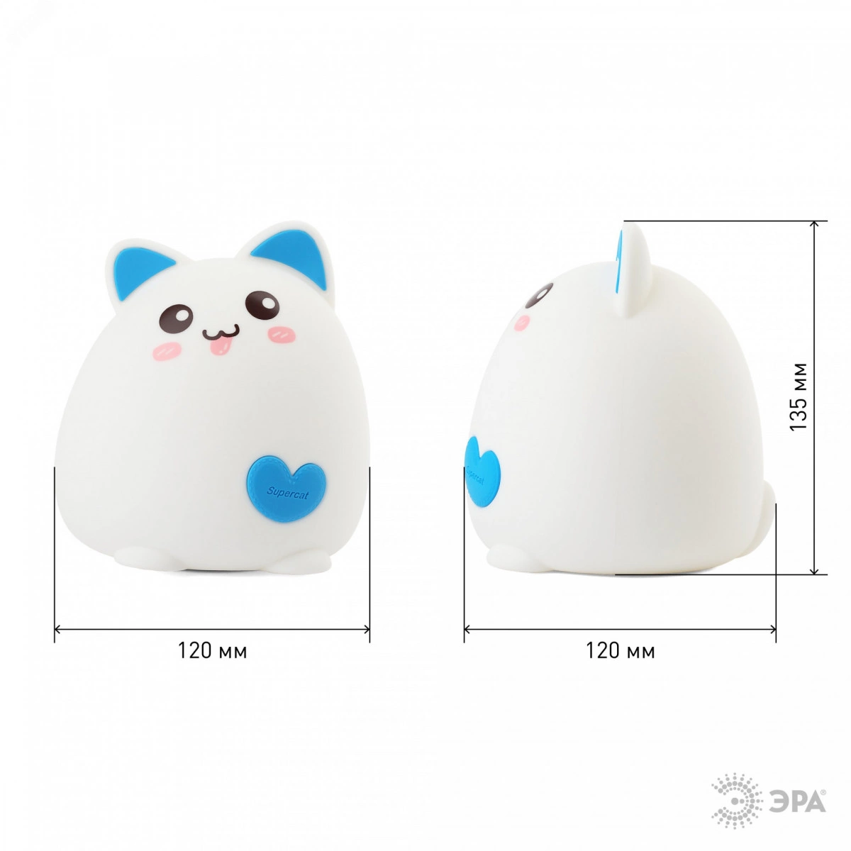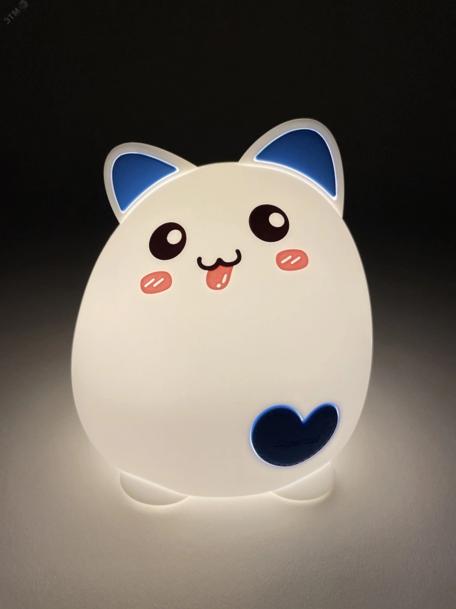 Мягкие светильники-ночники ЭРА из силикона с приятным на ощупь покрытием софт-тач имеют милый дизайн в виде фигурок животных и популярны как среди детей, так и среди взрослых. Режим плавной смены цветов завораживает, оказывает успокаивающий эффект, помогает бороться со стрессом и быстро засыпать. На эти светильники радостно смотреть, их приятно держать в руках. Они трогательные во всех смыслах - речь и о необычном оформлении корпуса, и о сенсорном способе управления. Пара прикосновений или легкое постукивание - и вот ночник уже изменил цвет свечения или режим работы. ЭРА NLED-414-2W-BU Котик работает от встроенного литиевого аккумулятора, который легко подзарядить от USB с помощью входящего в комплект USB кабеля. У Котика 3 режима - белый свет с 50% яркости, белый свет с максимальной яркостью, RGB c переходами цветов.