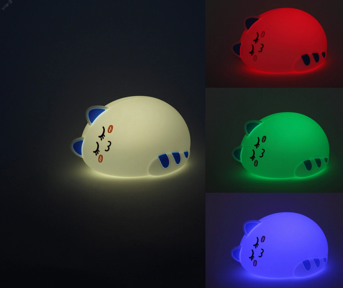 Мягкая игрушка-ночник ЭРА NLED-415-2W-BU в виде упитанного Котика, свернувшегося в комочек. Такой светильник-ночник не только настроит ребенка на сон, но и поможет создать уют в доме. Освещение регулируется через касание или с помощью пульта, который идет в комплекте. У Котика несколько режимов - два белых с разной степенью яркости и смена RGB-цветов - эти основные режимы переключаются касанием. А с пульта дистанционного управления можно выбрать новые оттенки или скорости переключения цвета - дети обожают такую ''цветомузыку''!