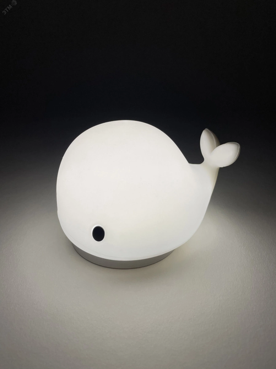 Очаровательный детский светильник-ночник ЭРА NLED-411-1W-W в виде аккуратной фигурки Кита. Он поможет интересно обставить детскую комнату, легко успокоит непоседу и создаст комфорт в спальне. У силиконового ночника 2 режима - постоянный белый свет и RGB c переходами цветов. Один прогонит монстра в шкафу или под кроватью, другой настроит малыша на яркие беззаботные сны. Освещение переключается с помощью прикосновения - и делать это очень комфортно благодаря приятной на ощупь поверхности. Кстати, Ваш ребенок может гладить игрушку - она поможет снять напряжение. Отключите сенсор, если хотите оставить нужный режим. Лампа-ночник работает на батарейках. В комплект также входит USB-шнур - подключите Кита к сети, если сядут батарейки (не входят в комплект) или если розетка Вам удобнее, и просто переключите Кита выключателем в режим USB.