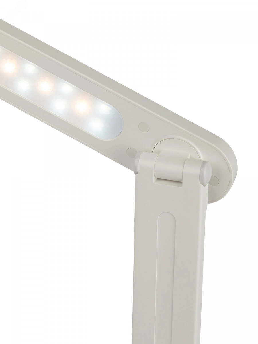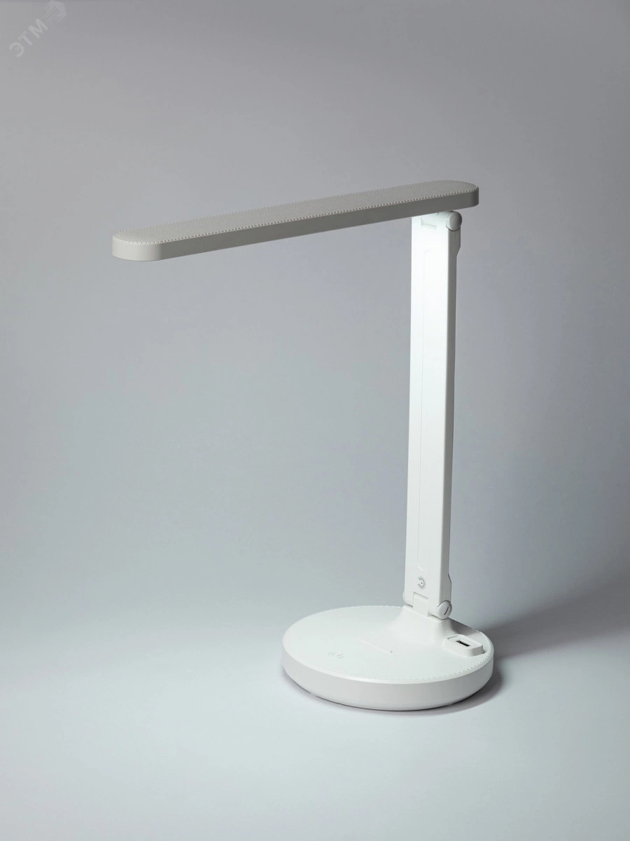 Настольный светильник ЭРА NLED-511-6W-W со светодиодами (LED) в качестве источников света в дизайне `под кожу`. Встроенный литиевый аккумулятор для автономной работы. Подзарядка от USB. USB-кабель в комплекте. Удобная складная конструкция с сенсорным управлением, возможностью выбора цветовой температуры и плавным диммером для регулировки яркости. На обратной стороне основания расположен выключатель для отключения/блокировки сенсора от случайного включения. В светильник встроена функция power bank - есть USB-порт для подзарядки устройств на основании (именно как power bank, автономно, от сети не подзаряжает). Направление света регулируется наклоном стойки и поворотом панели со светодиодами относительно стойки для максимального комфорта.
