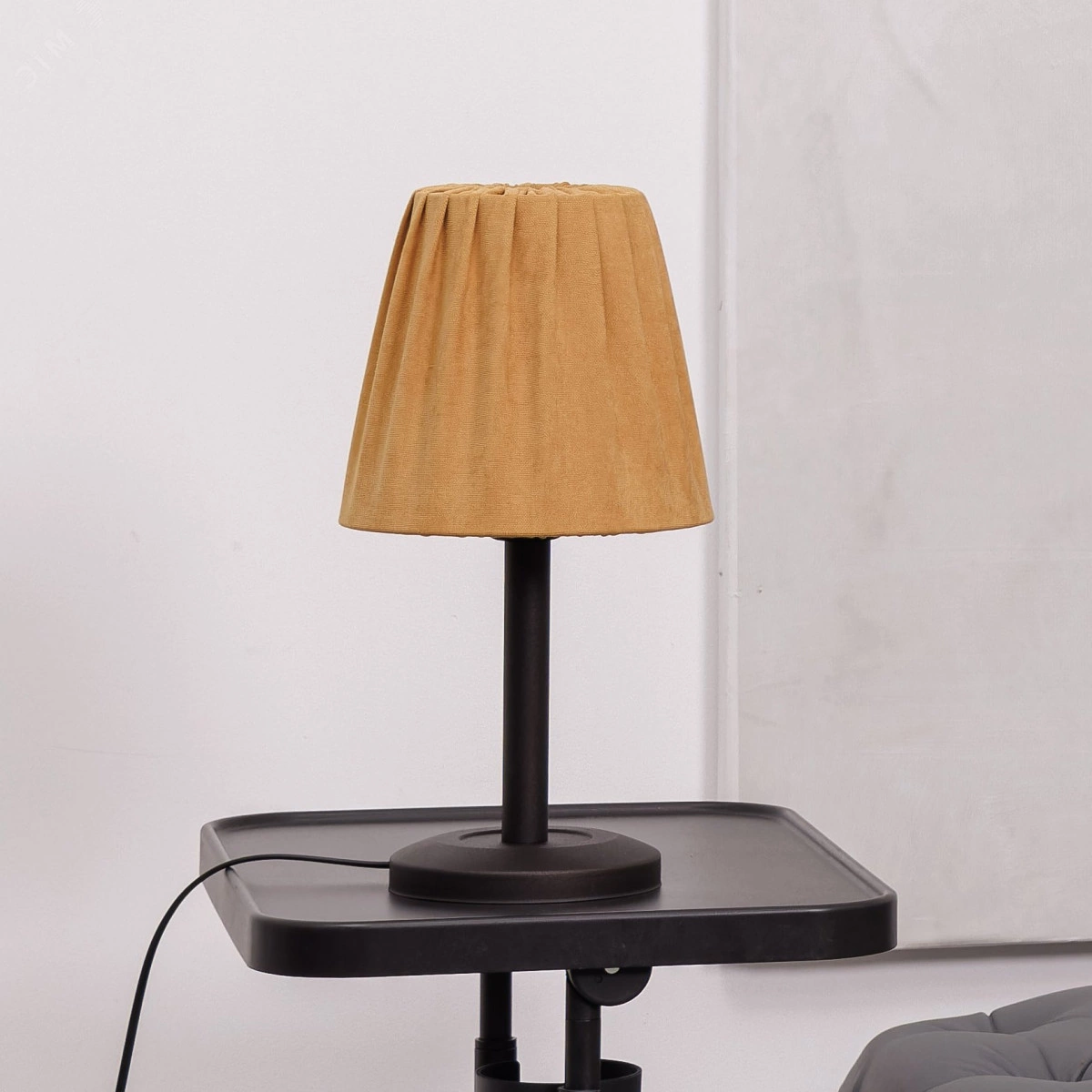 НАСТОЛЬНЫЙ СВЕТИЛЬНИК ИЗ КОЛЛЕКЦИИ ЯНТАРЬ с абажуром благородного бежево-оранжевого оттенка. Янтарь ассоциируется с теплом солнечных лучей, энергией высоких сосен, ласковым шепотом морского прибоя. Создавая коллекцию, мы хотели передать Вам эти ощущения. Чтобы каждый раз, включая светильник, Вы чувствовали покой и расслабление, Ваши силы восстанавливались, а настроение улучшалось. ГАБАРИТЫ. Общая высота — 39 см, высота абажура — 19 см, верхний диаметр абажура — 12 см, нижний диаметр абажура — 21 см, длина шнура – 165 см. АБАЖУР — из бархатистой ткани канвас цвета янтарь. Крой абажура съемный, его можно стирать в ручном режиме при 30 градусах. Устойчивая СТАЛЬНАЯ СТОЙКА окрашена в благородный цвет черного кофе. Игра фактур металла и ткани придает светильнику современный вид. Он станет интересным акцентом в интерьерах различных стилей.
