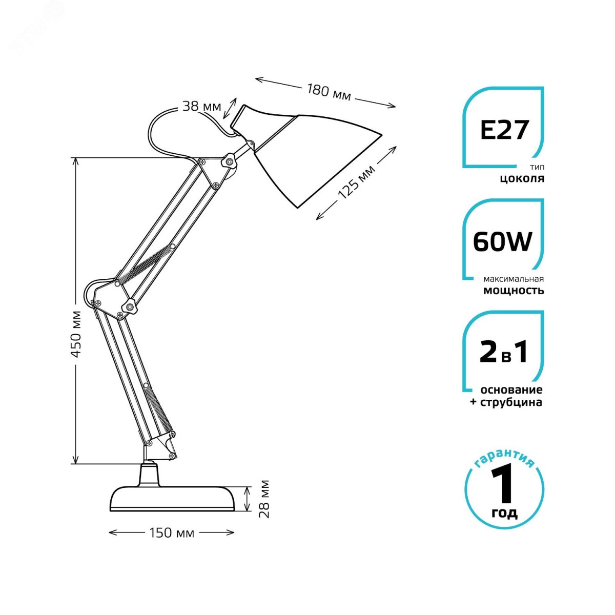 Светильник настольный под лампу E27 х60 Вт 220-240В IP20 300х150 мм Белый струбцина GTL Gauss