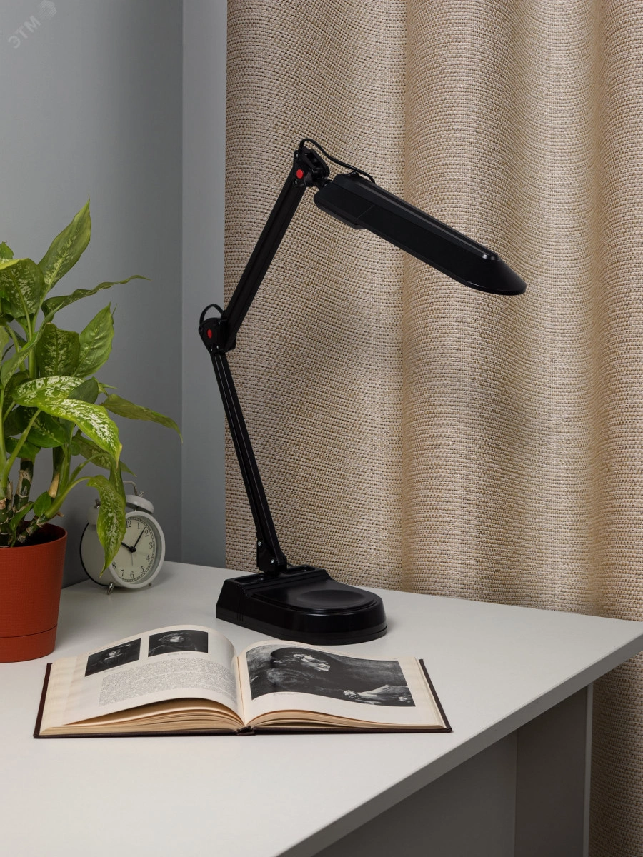 Настольный светильник ЭРА NL-202-G23-11W-BK предназначен для использования с энергосберегающей лампой, лампа входит к комплект. Два варианта крепления в комплекте: устойчивое основание и струбцина. Высота плафона регулируется двухсекционной сгибающейся стойкой. Отлично экономит рабочее пространство. Варианты с комбинированным креплением дают возможность выбрать, как будет удобнее использовать светильник - с основанием его можно разместить в любом месте на поверхности стола, со струбциной компактно и надежно закрепить на край.