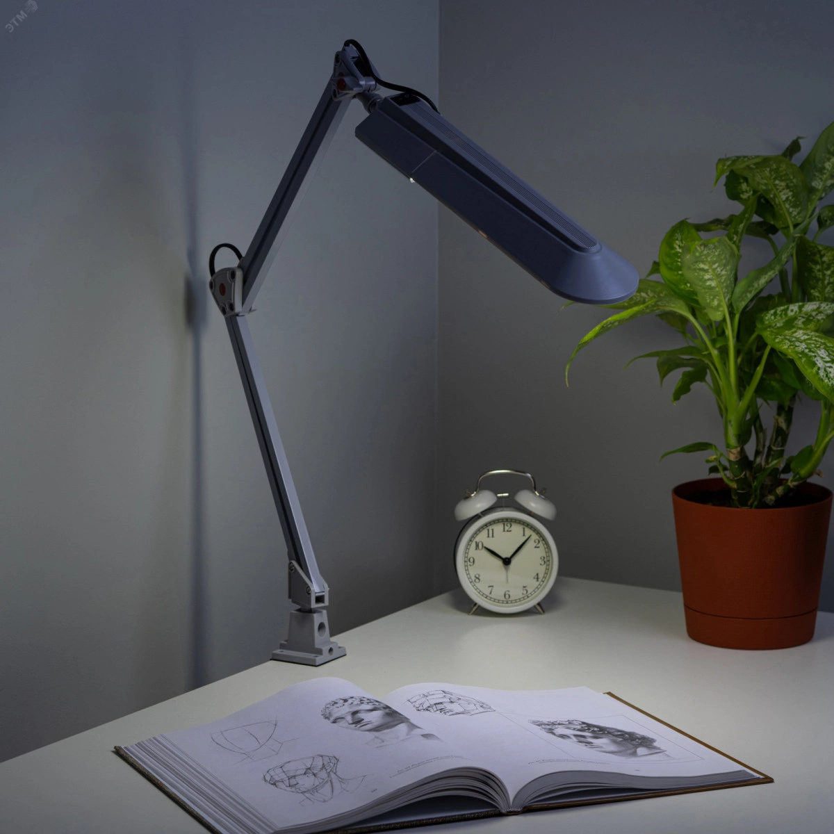 Светильник настольный с лампой PL на струбцине серый NL-201-G23-11W-GY ЭРА