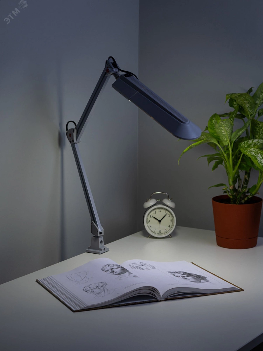 Светильник предназначен для использования с энергосберегающей лампой, которая обеспечивает экономию электроэнергии до 70%. Лампа входит к комплект. Удобное крепление на струбцину к любой плоской поверхности. Выключатель на основании плафона.Высота плафона регулируется двухсекционной сгибающейся стойкой, направление света регулируется поворотом плафона в любом направлении под любым углом.Как и все светильники ЭРА с лампой PL, модель укомплектована ЭПРА (электронным пускорегулирующим аппаратом), обеспечивающим ровный свет без мерцания.Для использования с энергосберегающей люминесцентной лампой, имеющей следующие характеристики: мощность 11W, цоколь G23, 220V 50HZ, лампа в комплекте.