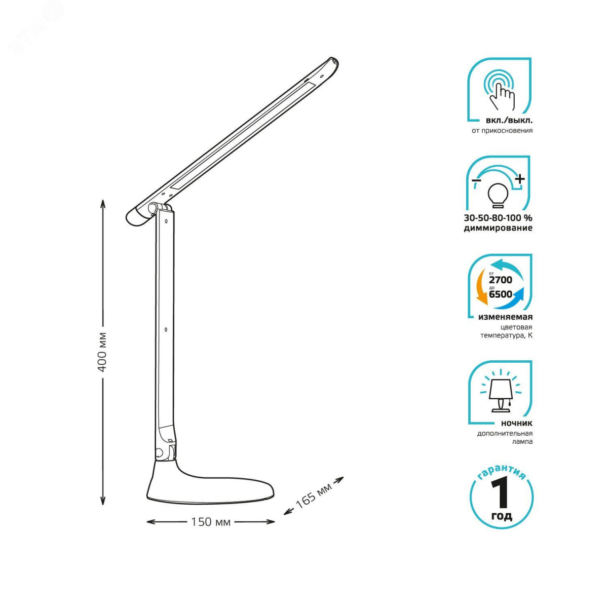 Светильник настольный светодиодный LED 10 Вт 550 Лм 2700-6500К модель GTL204 белый диммируемый+ночник GTL Gauss