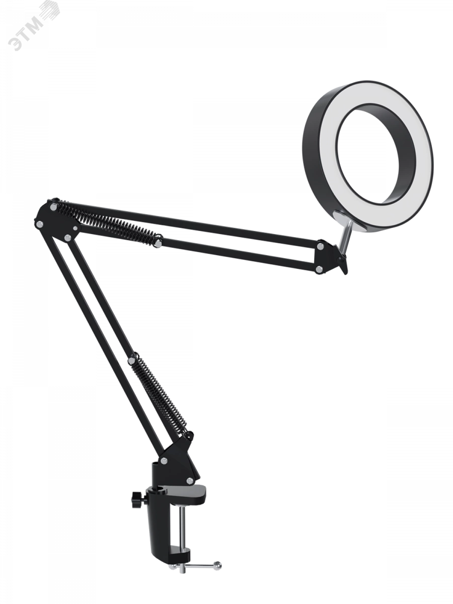 Рабочая лампа с кольцевым светом - для офиса, учебы, хобби или записи блога. Светильник надежно крепится винтовым зажимом, а три части лампы вращаются и регулируется в любом направлении. Удобный рассеянный свет в форме круга - самый комфортный для макияжа или света на камеру. 10 уровней яркости и 3 возможных оттенка света. Свет без пульсаций - мягкий и безопасный для глаз, поможет комфортно работать или рисовать. В комплекте - лампа, USB-кабель питания, адаптер 220В с евровилкой.