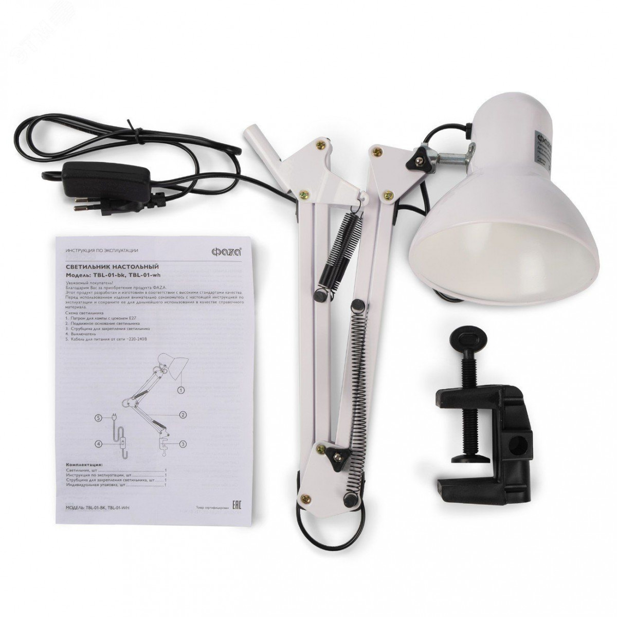 Полное описание: Светильник настольный TBL-01 Е27 на струбцине белый ФАZА