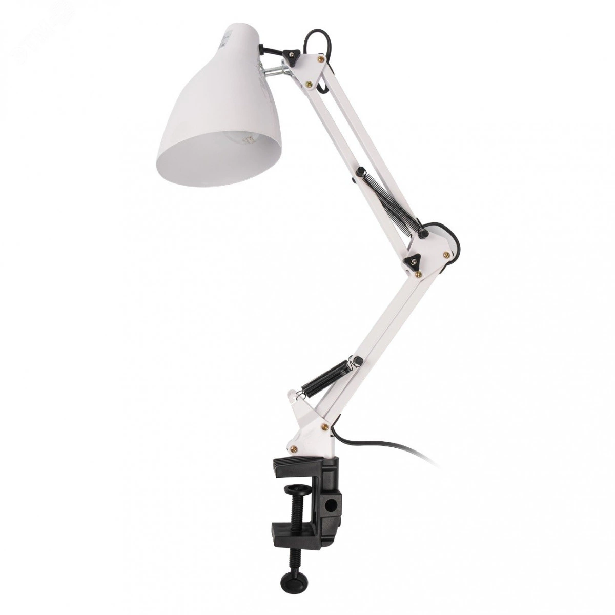 Полное описание: Светильник настольный TBL-02 Е27 на струбцине утяжеленная подставка белый ФАZА