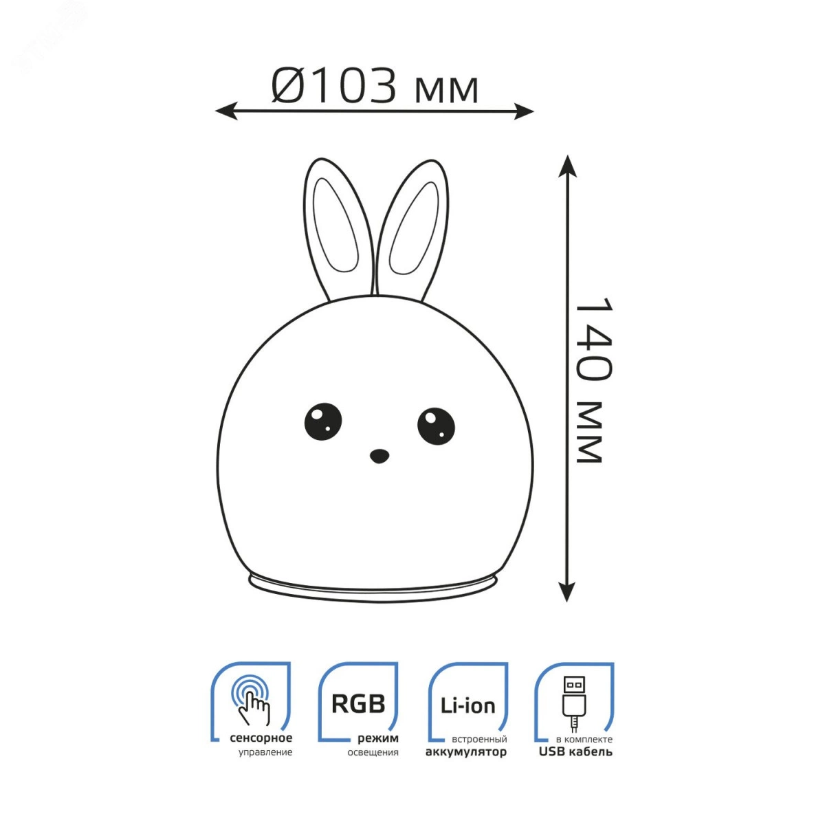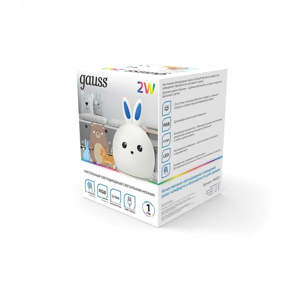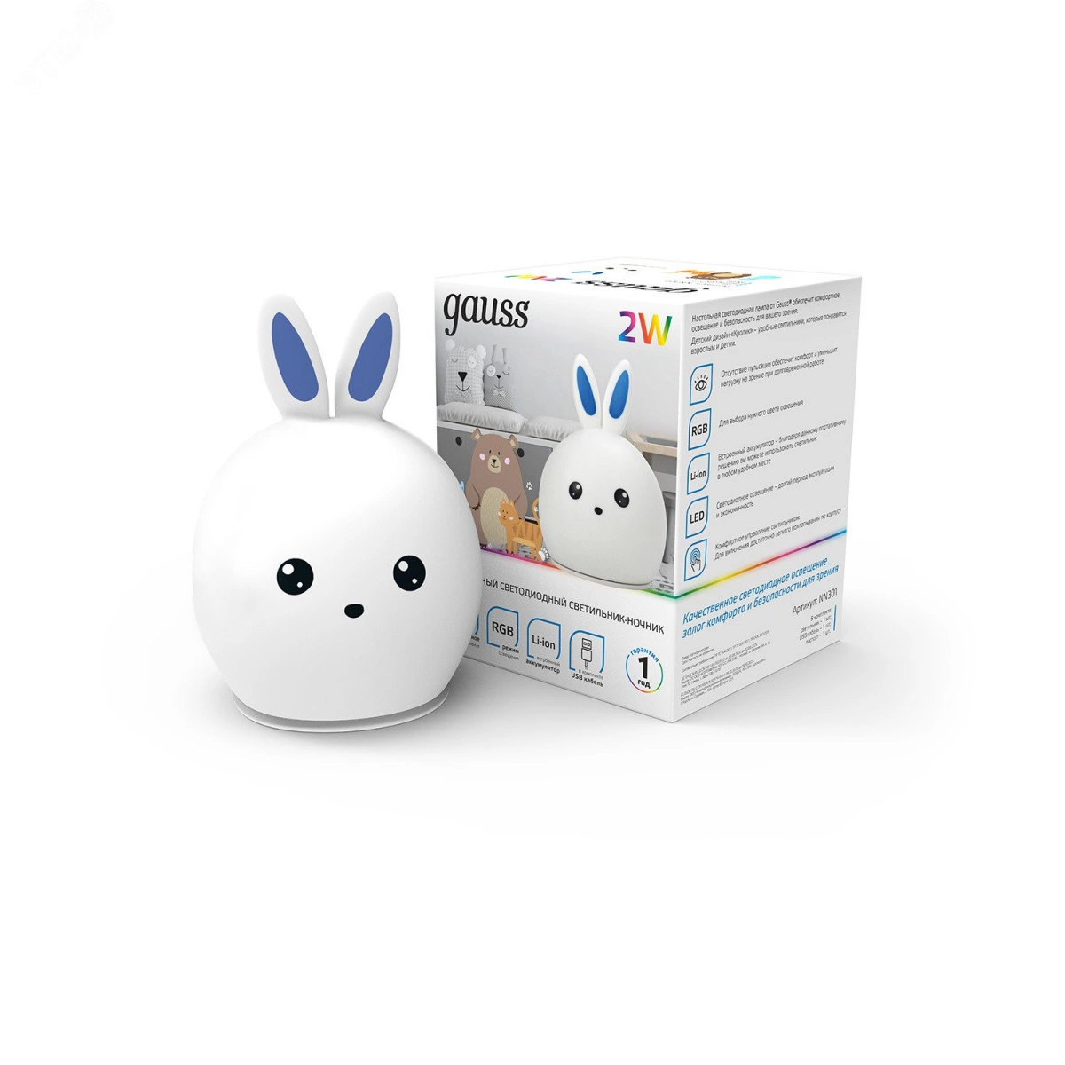 Светильник-ночник светодиодный детский LED 2 Вт модель белый с Li-ion аккумулятором и USB разъемом кролик NN Gauss