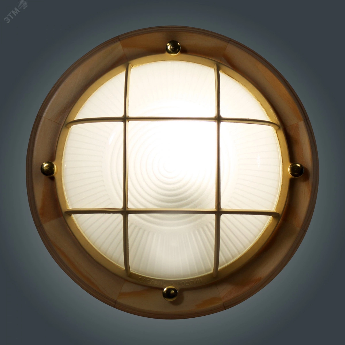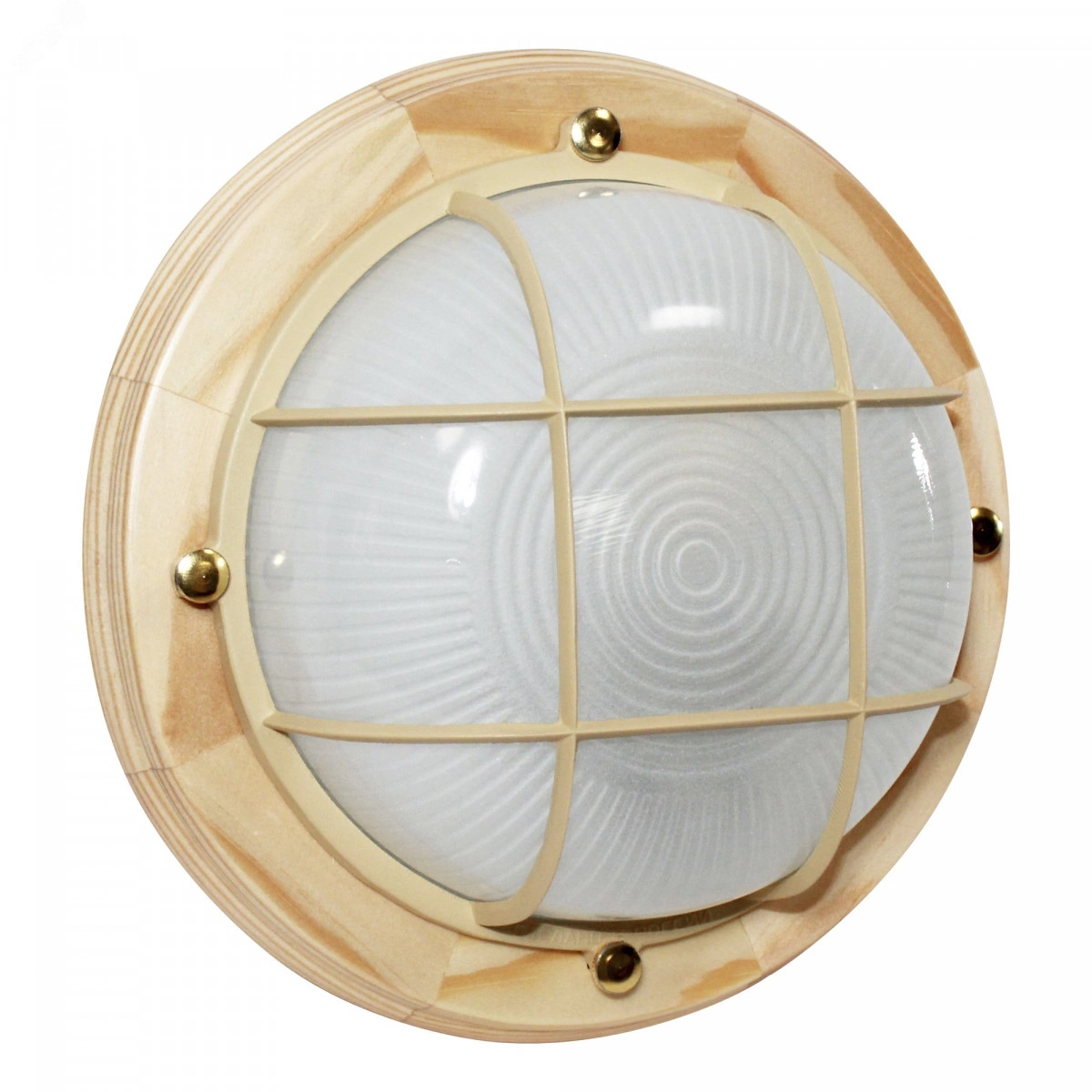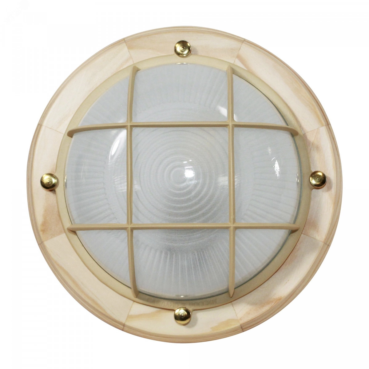 Светильник НПП-03-60-014 IP65 Самарканд 1302 Круг малый матовый / корпус с решеткой дер. Сосна индивидуальная упаковка