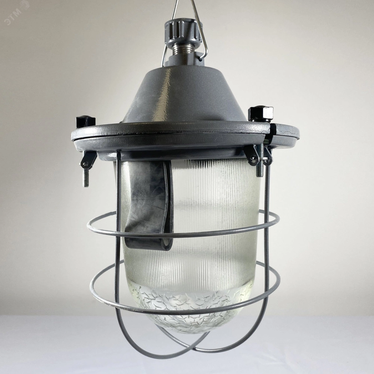 Для технических и производственных помещений с повышенной запыленностью и влажностью. Алюминиевый корпус с порошковой покраской не подвержен окислению. Прочный рассеиватель из стекла надежно соединен с корпусом и обеспечивает пылевлагозащиту IP62, защищен от внешнених воздействий металлической решеткой. Керамический патрон позволяет использовать светодиодную лампу или лампу накаливания до 200Вт. крепится светильник на трубу вместе с узлом ввода или на крюк через скобу.