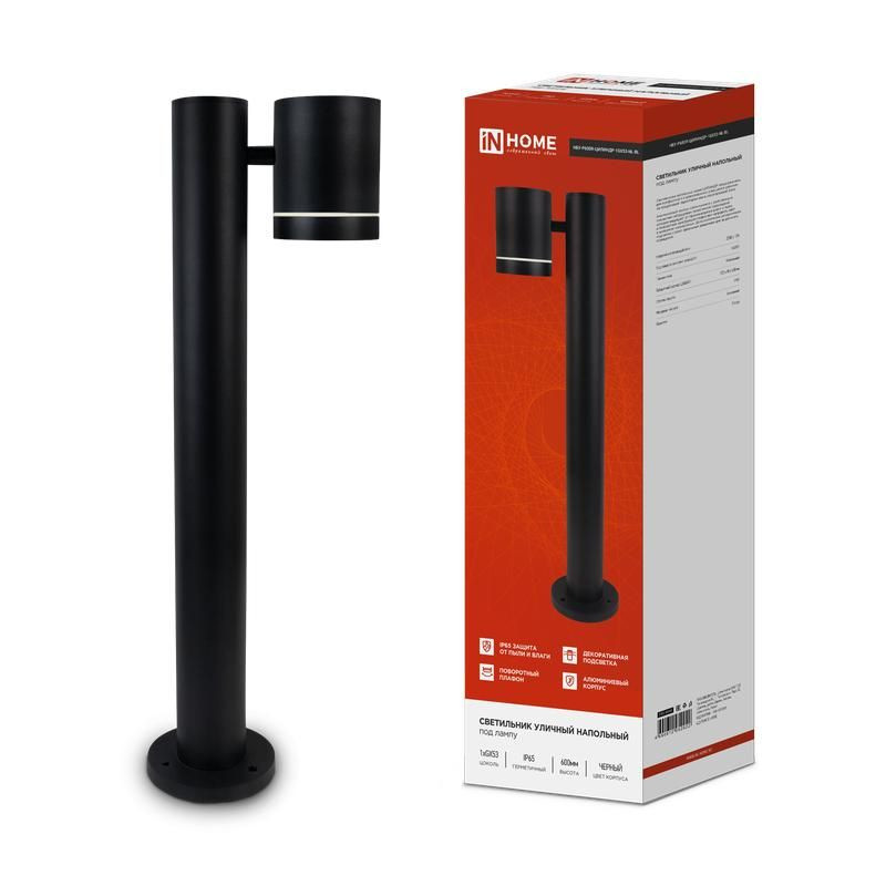 Полное описание: Светильник P600R-ЦИЛИНДР-1GX53-NL-BL IP65 под лампу GX53 600мм НБУ уличный напольный алюм. черн. IN HOME 4690612052922