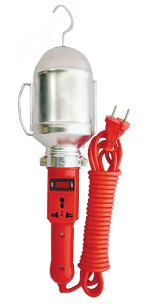 Светильник переносной 'UNIVersal' провод марки ПВС (2-0,75) со степенью защиты IP20, с выключателем предназначен для временного местного освещения рабочей зоны при удалении от источника света и питающей сети. Тип источника света лампа накаливания или энергосберегающая лампа, тип цоколь Е 27, максимальная мощность 60 Вт.