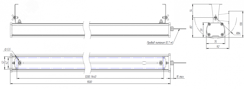 Корпус изготовлен из экструдированного алюминиевого профиля (сплав АД31Т1) с анодированным покрытием. Рассеиватель крепится с помощью прижимных алюминиевых планок. Боковые крышки из литого под давлением алюминия имеют коэффициент расширения, идентичный материалу корпуса. Силиконовые уплотнители защищают источник питания от влаги.