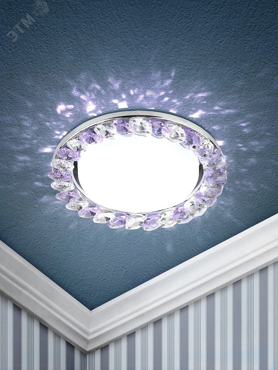 Светильник под лампу Gx53, 220V,13W, хром/прозрачный, фиолетовый DK85 CH/WH+PU ЭРА