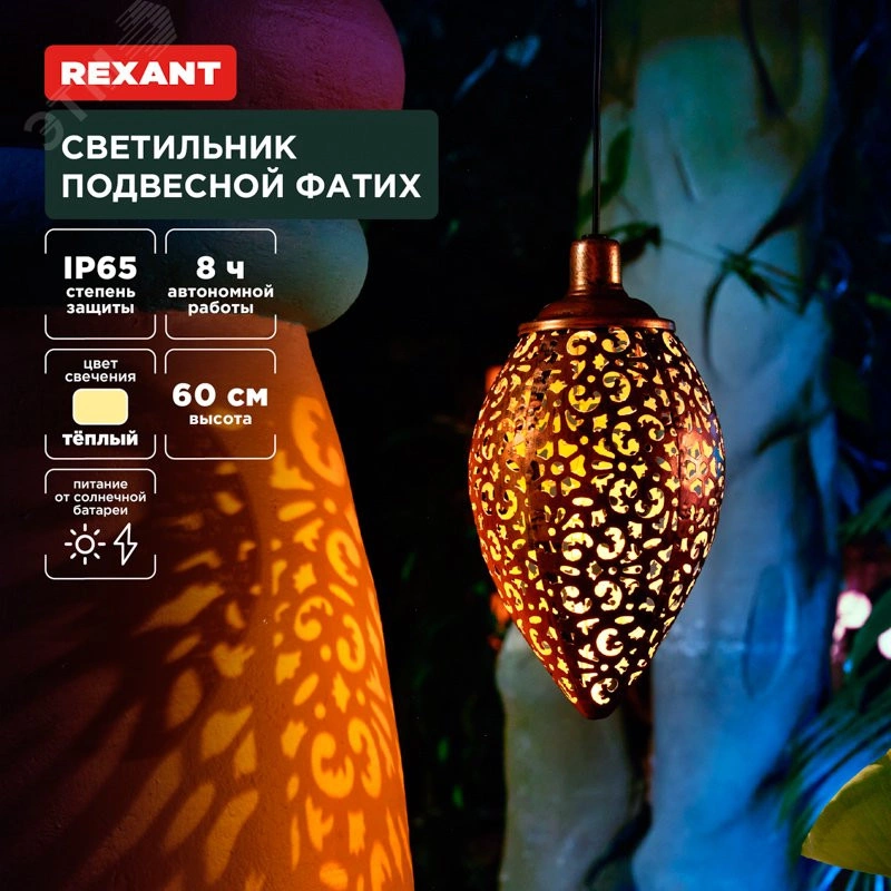 Подвесной светильник Фатих – это изысканный элемент садового декора, предназначенный для создания дополнительного освещения или акцентной подсветки. Может быть размещен в беседках, на верандах, деревьях, арках, а также на садовых скульптурах или инсталляциях. Дизайн светильника вдохновлен богатой историей и культурой Стамбула, что привнесет в ваш сад нотки восточной элегантности и утонченности. Светильник оснащен солнечной панелью, которая поглощает солнечные лучи в течение дня и преобразует их в электрическую энергию. Накопленная энергия хранится во встроенном аккумуляторе, что позволяет светильнику автономно функционировать около 6-8 часов и освещать окружающую территорию вечером и ночью, не требуя подключения к электросети.