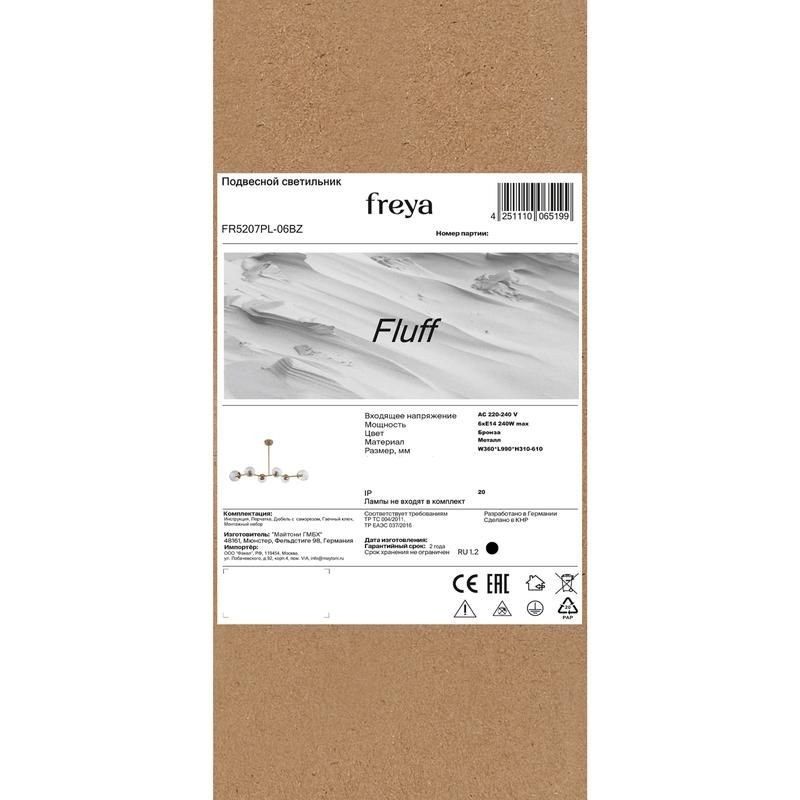 Полное описание: Светильник подвесной Fluff 6х40Вт E14 IP20 Freya FR5207PL-06BZ
