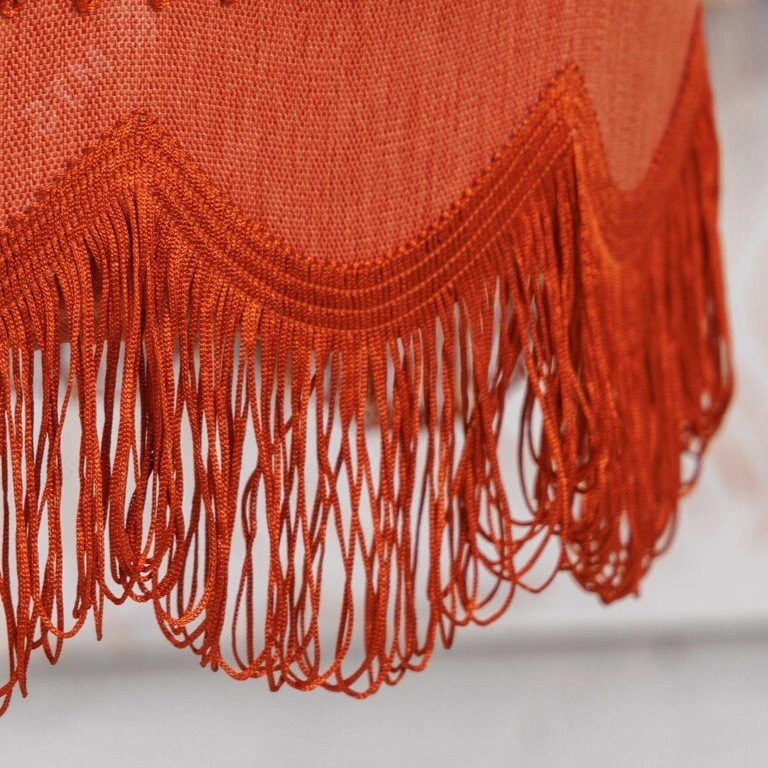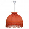 Роскошный подвесной светильник в стиле ретро станет украшением Вашего дома. Он смотрится нарядно и празднично в дневное время, а в вечернее дарит красивый, мягкий свет, который преображает пространство вокруг, делает его по-домашнему уютным. Абажур - из льняной ткани. Цвет - терракот, активный, интересный красный оттенок. Абажур исполнен в стиле ретро, декорирован тесьмой и бахромой. Каркас абажура изготовлен из проволоки d-4 мм, что придает стабильность и прочность, но дополнительно не утяжеляет светильник.