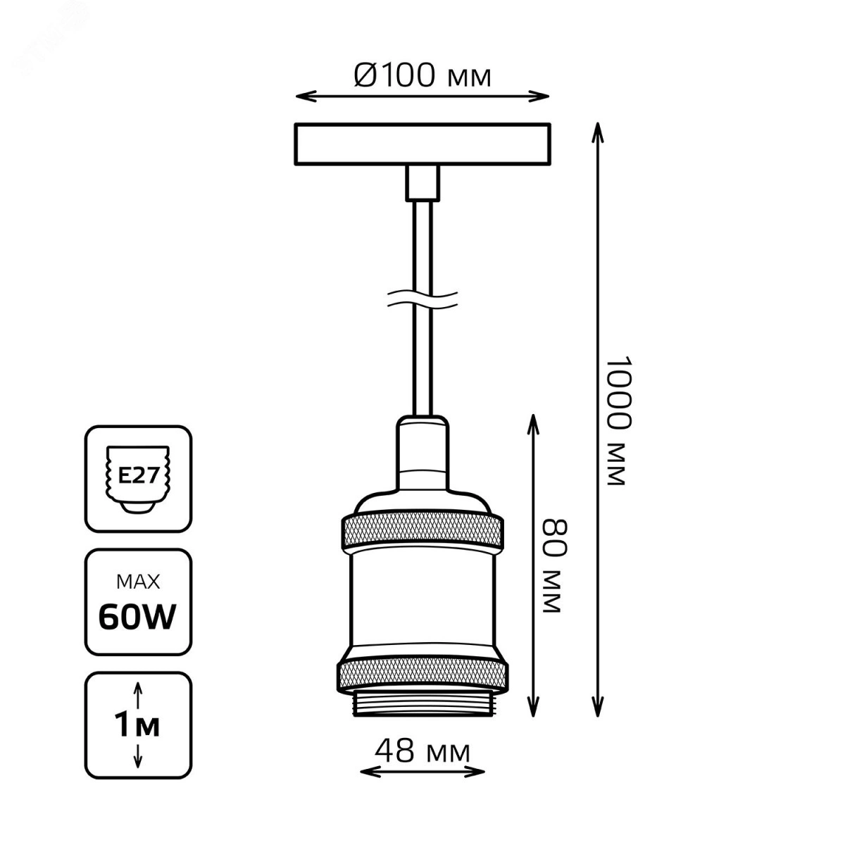 Стильный дизайн для современного интерьера|Подходит для ламп с цоколем E27, обеспечивая универсальность|Длинный подвес для широких возможностей размещения|Идеален для лофт и минималистичных стилей интерьера|Легкая установка и качественные материалы д