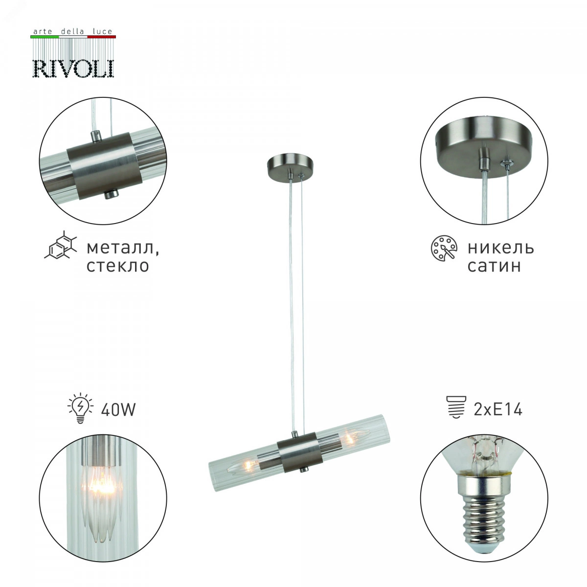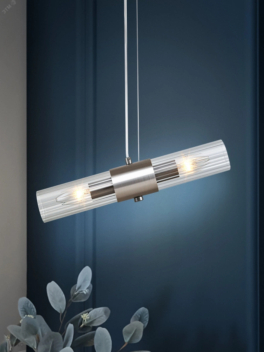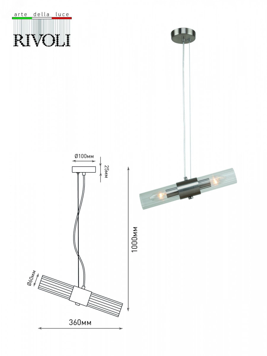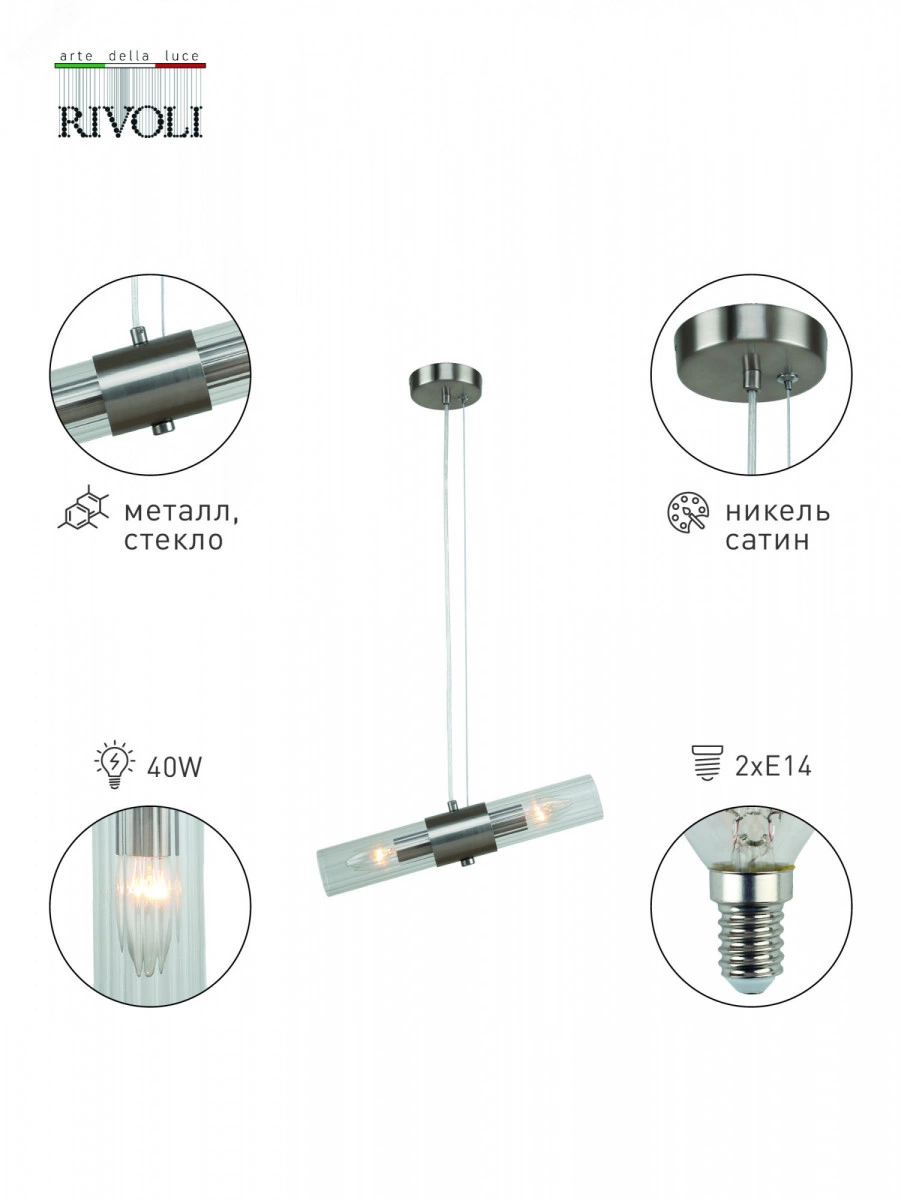 Подвесной светильник Rivoli Delia под 2 лампы Е14 40 Вт. Рекомендуемая колба лампочек для данного подвеса - свеча. Оригинальный стеклянный светильник на тросе поможет оформить интерьер в стиле модерн, классика, современная классика, минимализм. Высоту троса можно отрегулировать, когда светильник подвесной будет монтироваться на потолок. Потолочные подвесные светильники - настоящий тренд современного дизайна интерьеров.