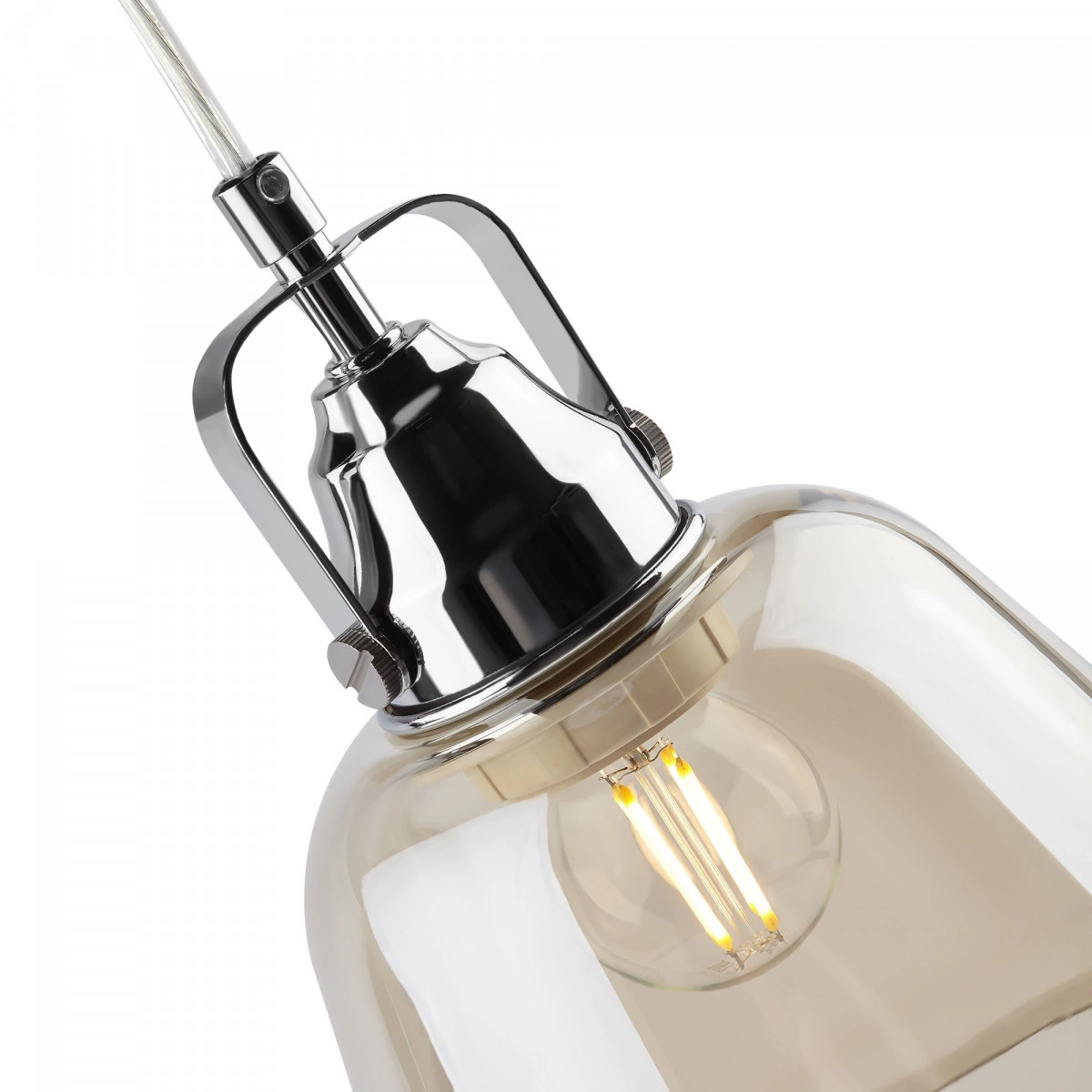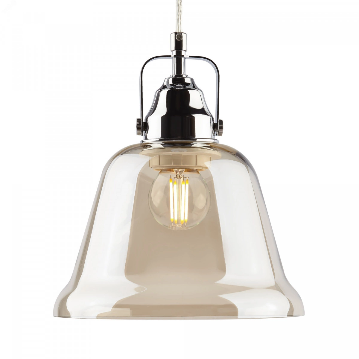 Оригинальные светильники с плафонами в форме колокольчика. Толстое дымчатое стекло отлично сочетается с хромированной арматурой и декоративной крепёжной фурнитурой. Своей формой эти светильники напоминают бутон цветка на стебле или уличные ретро-фонари. Создадут уютную атмосферу в гостиной, спальне, на кухне, в коридоре, столовой, студии. Помогут расставить в помещении световые акценты, разнообразить интерьер. Коллекция представлена подвесом на 1 лампу.