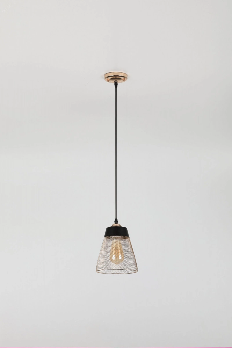 Серия люстр и подвесов Rivoli Helma проста и самобытна, но может подчеркнуть свой лоск и благосостояние. Сетчатые плафоны на манер садовых плетёных абажуров покрыты золотистым напылением. Композицию уравновешивают сдержанные чёрные основания ламп. Коллекция представлена подвесом на 1 лампу.