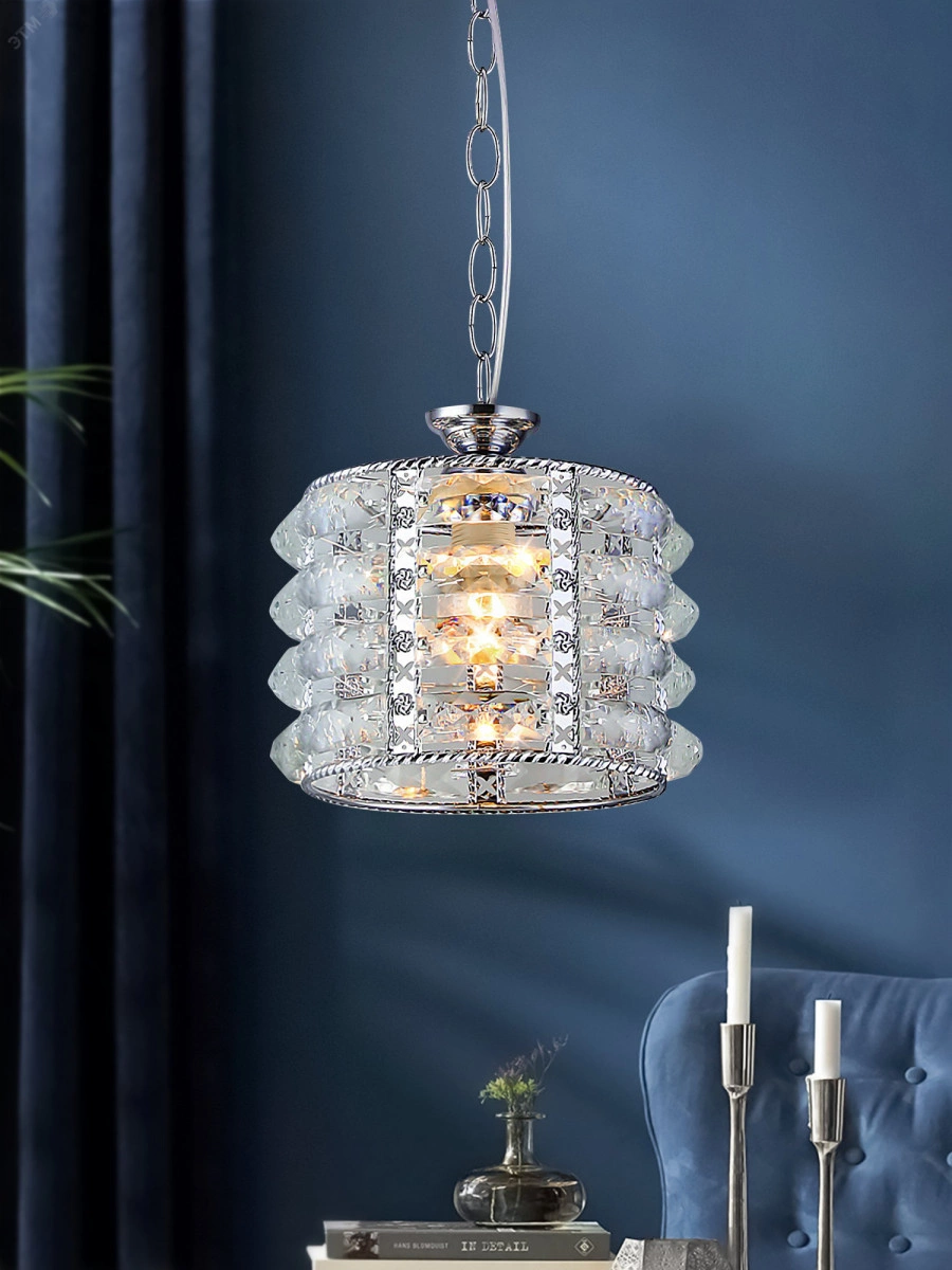 Светильник подвесной (подвес) Rivoli Liane 2041-201 потолочный 1 х Е27 40 Вт хром хрусталь классика