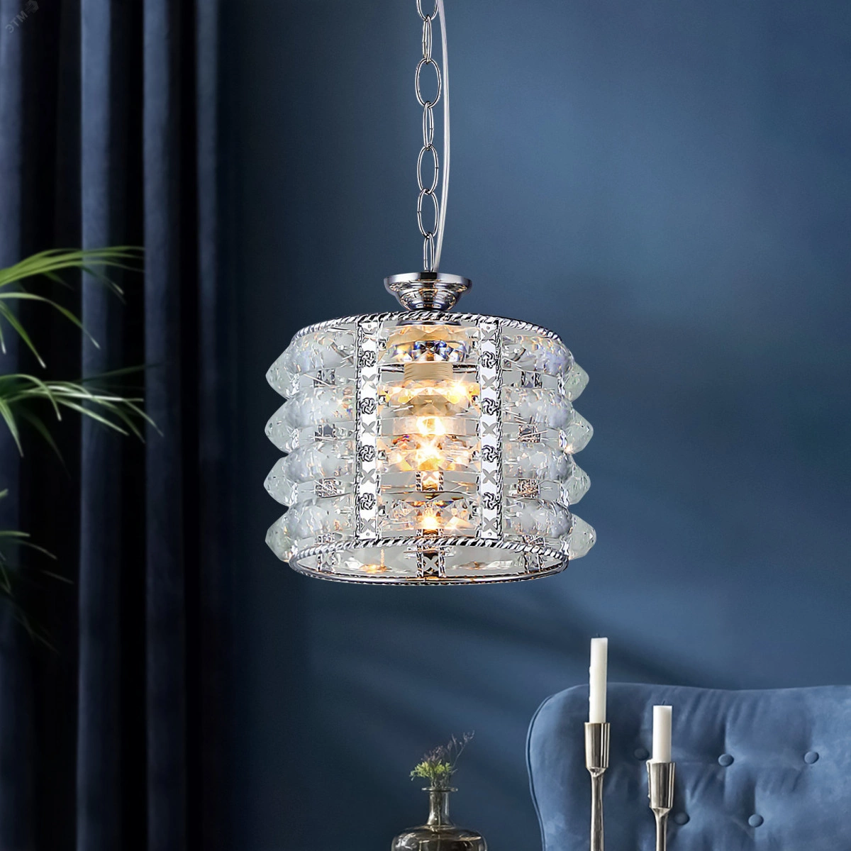 Rivoli Liane хрустальный подвесной светильник, созданный итальянскими дизайнерами. Металлическая арматура окрашена в модный цвет хром. Рассеиватель декорирован эффектными кристаллами из хрусталя высокого качества. Трос потолочного подвесного светильника Liane декорирован цепочкой и имеет возможность регулировки высоты. Подвесные светильники на тросах Liane отлично подойдут для интерьера в светлых тонах. Они сочетают в себе традиционный взгляд на хрустальные люстры и современный подход к освещению пространств. Применяются с 1 лампой Е27 мощностью 40 Вт. Освещают площадь 3 м2. Эти необычные подвесные светильники используются в качестве дополнительной подсветки или как основные люстры. Для больших помещений стоит купить несколько штук, чтобы создать яркое равномерное освещение.