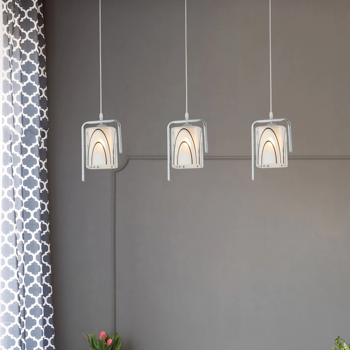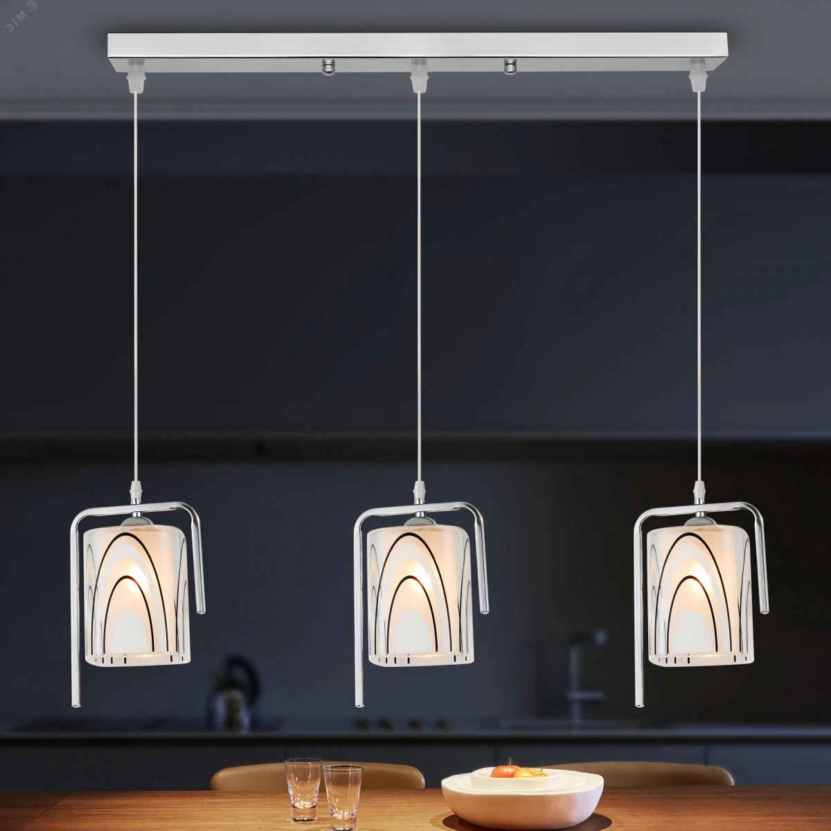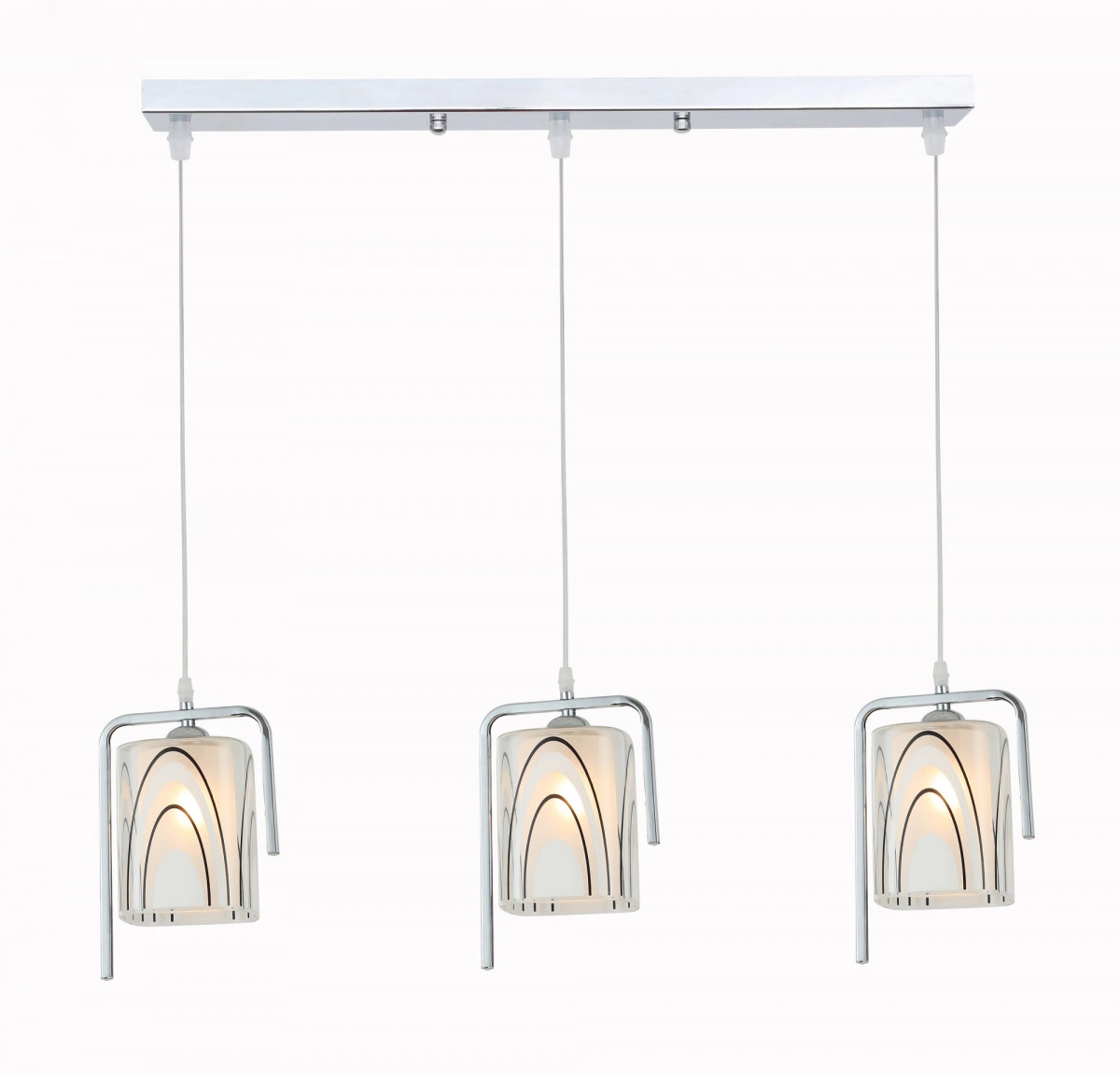 Люстра-подвес Noemi привлекает к себе внимание. Хромированные металлические каркасы Rivoli Noemi отлично сочетаются с матовыми плафонами. Люстры этой серии интересны также своей геометрией - словно умелый художник-абстракционист изобразил незавершённые прямоугольники и многослойные полуовалы. Коллекция представлена подвесным светильником на 3 лампы.