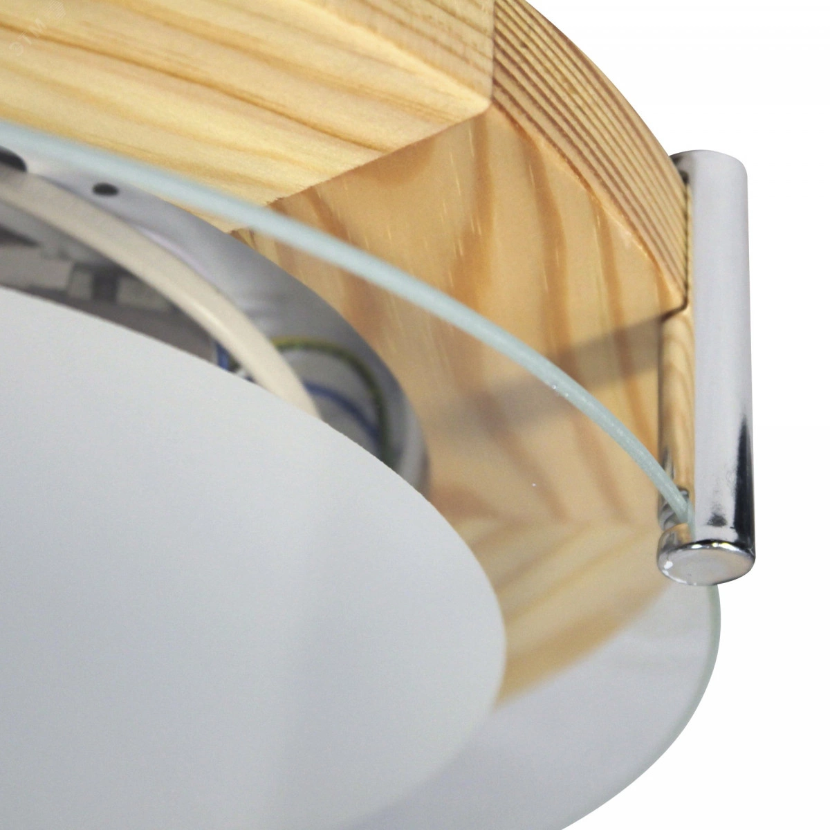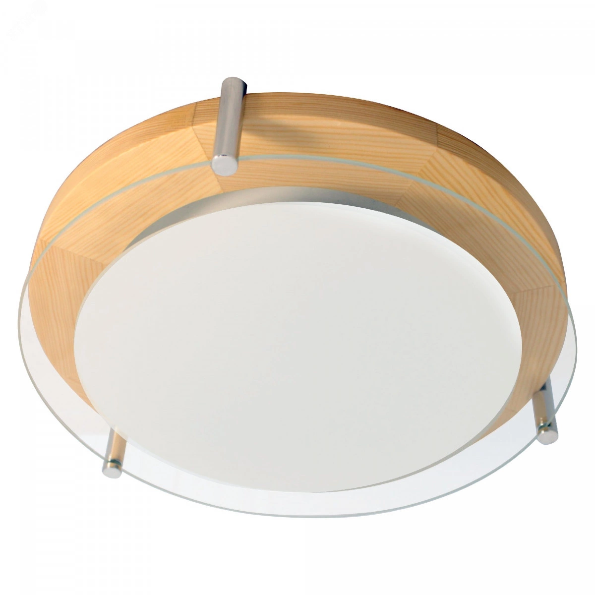 Светильник с деревянными элементами отлично подойдет для установки в комнате, оформленной в современном стиле. Рекомендуемая площадь освещения - 7 м2. Производитель рекомендует использовать для устройства лампы накаливания с цоколем E27 и мощностью 60W, а также светодиодные и энергосберегающие лампы. Крепление - на дюбеля и шурупы как на стену, так и на потолок. Светильник дает максимум света, т.к. на основании светильника предусмотрен отражатель. Плафон изготовлен из стекла, легко моется и сохраняет свой безупречный внешний вид на протяжении всего срока эксплуатации. Диаметр - 300 мм.