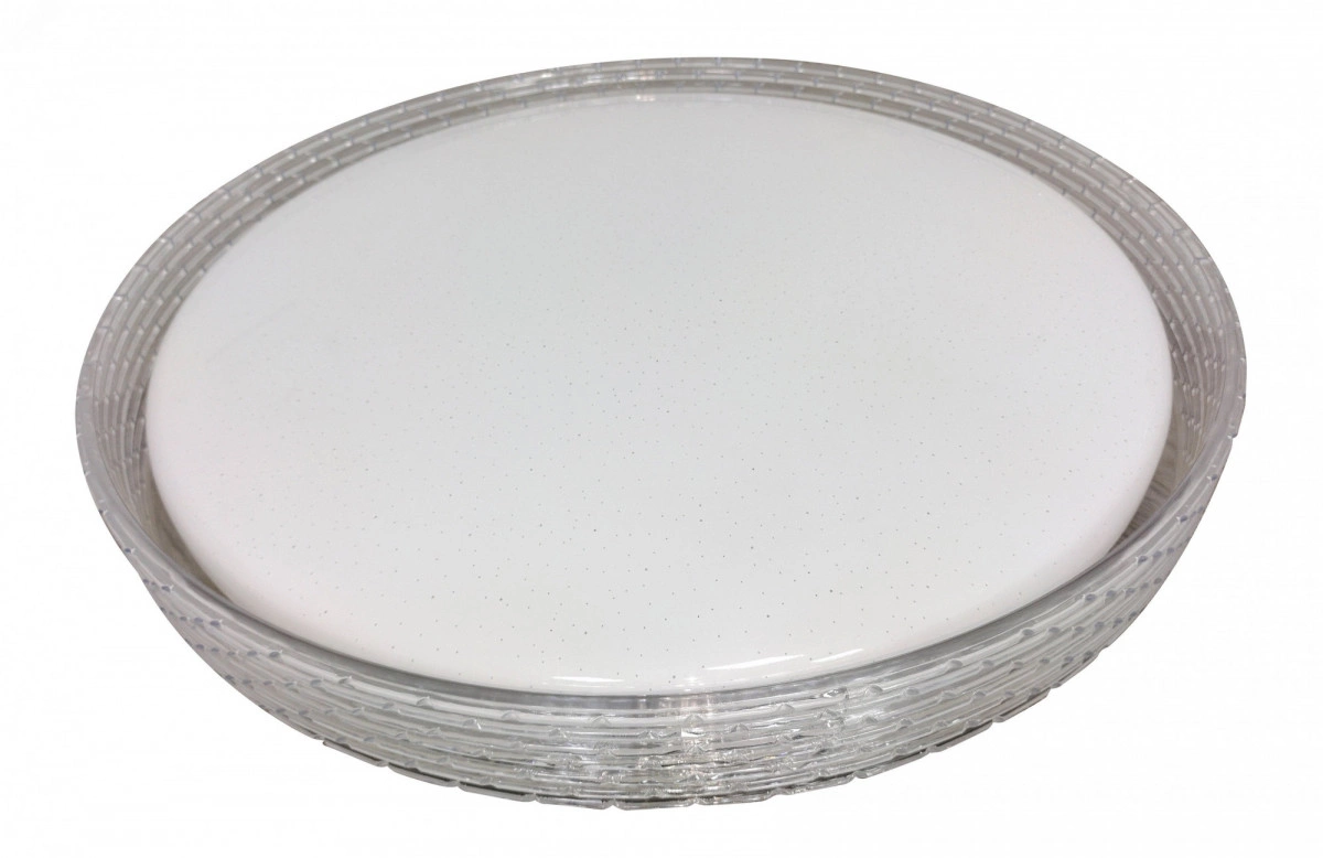 Светильник светодиодный потолочный ЭРА SPB-6-70-RC серии LIM отличается возможностью регулирования яркости светового потока и цветовой температуры. Пульт дистанционного управления имеет крупные кнопки с подсказками, очень удобен в использовании. Светильник можно расположить в уютной гостиной и менять яркость освещения в зависимости от настроения или необходимости. Цветовая температура регулируется в пределах от 3000 К до 6000 К. Диаметр корпуса составляет 51 см. Светодиодный светильник выполнен в классическом дизайне. На стальном корпусе располагается светодиодная плата, оснащенная современным и надежным драйвером. Матовый рассеиватель имеет декор, напоминающий звездное небо, он обрамлен прозрачным элементом `под хрусталь`. Подобная конструкция выглядит особенно выразительно в темное время суток, создавая уютную атмосферу с эффектным свечением вокруг корпуса лампы.