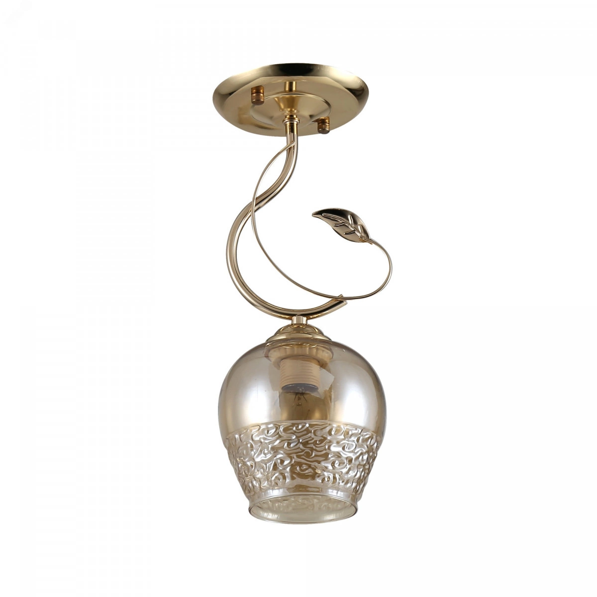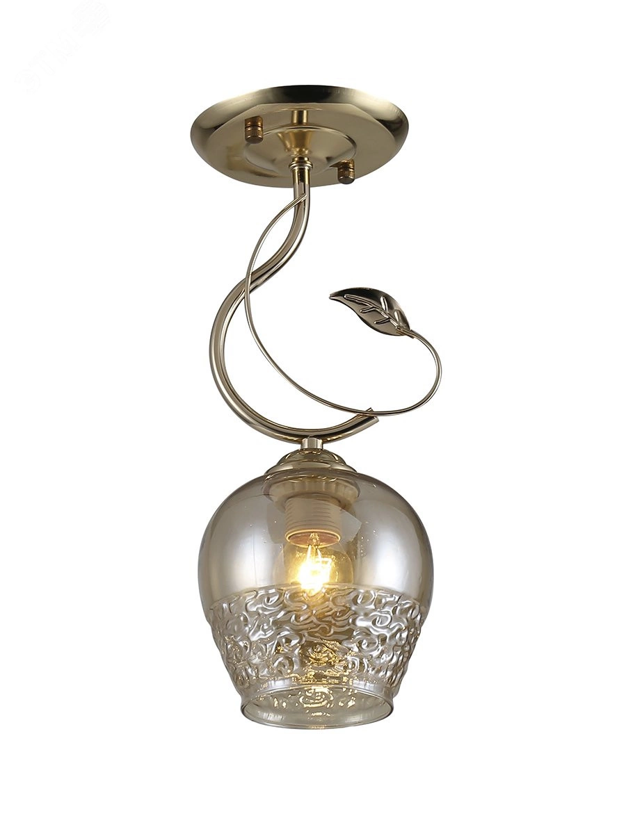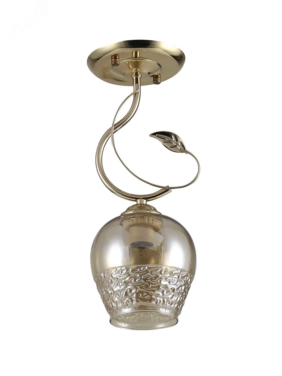 Rivoli Kimberly - элегантный светильник на потолок в виде цветка в золотистых оттенках. Дизайн данного потолочного светильника создан итальянским брендом Rivoli, хорошо известным в России за продукцию с оптимальным сочетанием цены и качества. Светильник Kimberly подходит на любой тип потолка, в том числе на натяжной потолок. Его элегантная арматура гальванизирована в золотой цвет, а плафоны имеют теплую перламутрово-золотистую тонировку. Корпус декорирован запоминающейся золотой веточкой с листочком. Стеклянный плафон в виде бутона украшен фигурным ободком с объёмным узорчатым рисунком. Этот светильник-люстра привнесет в ваш дом уют и красоту. Идеальным решением такой потолочный светильник станет для традиционных интерьеров, пространств в стиле модерн. Можно купить для комнат в восточном стиле. Источник света -Е27 60Вт.