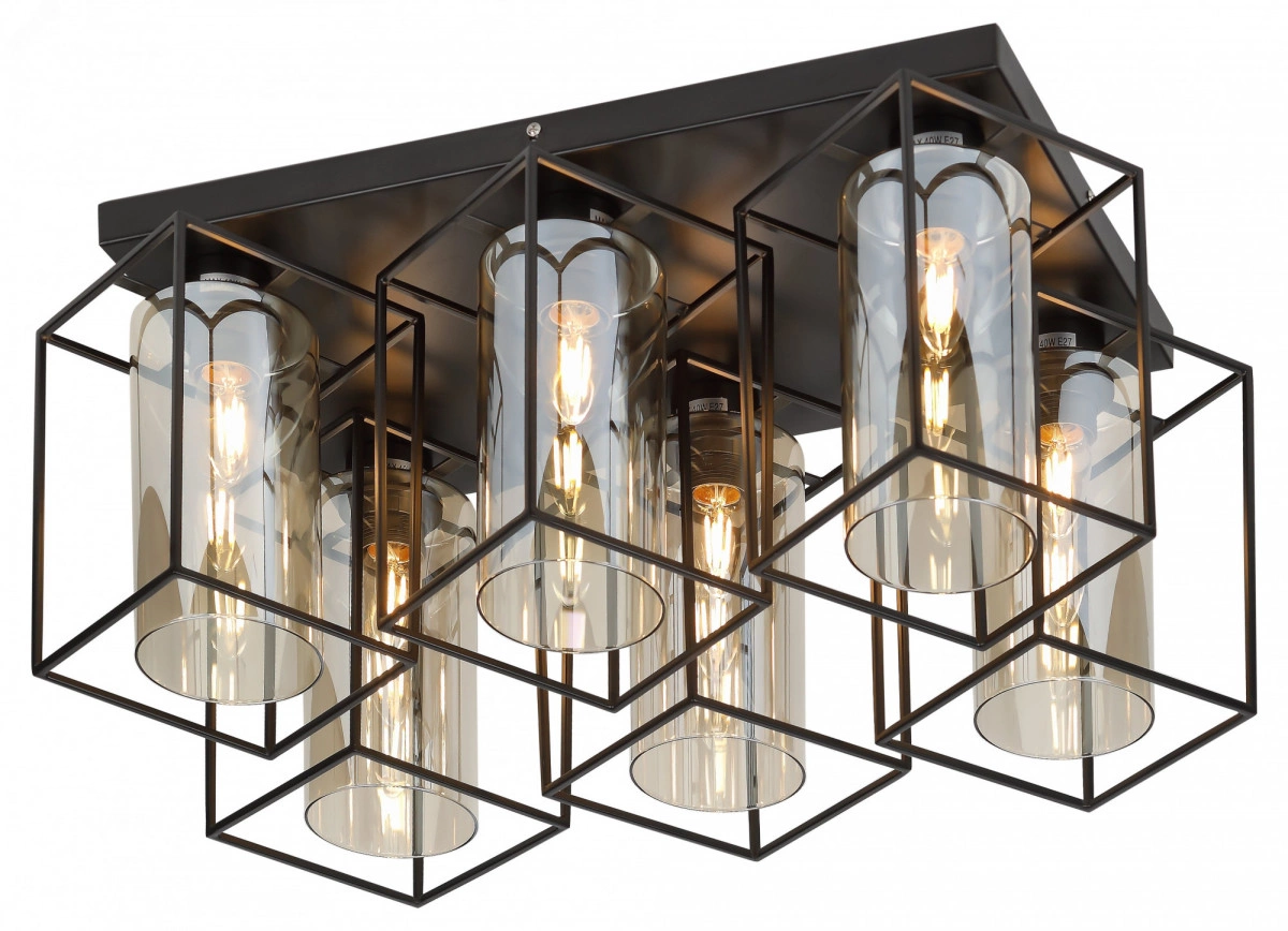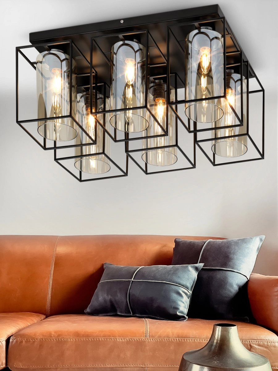 Rivoli Leonie потолочный светильник с 6 оригинальными плафонами. Имеет лаконичное основание в виде прямоугольника черного цвета. Эти люстры потолочные созданы итальянскими дизайнерами специально для интерьеров лофт, кантри, ретро, индустриальный, скандинавский, классический. Уникальный облик светильники потолочные Leonie приобретают за счёт минималистичных металлических каркасов, обрамляющих стеклянные плафоны-цилиндры. Тонированное стекло потолочной люстры Leonie добавляет освещению мягкости и уюта.Rivoli Leonie часто выбирают в качестве люстры в прихожую, люстры на кухню или люстры в загородный дом. Эти потолочные светильники выглядят очень натурально и собирают положительные отзывы как во включенном, так и в выключенном состоянии. Являются самобытной деталью интерьера, превосходно вписываются практически в любое пространство.