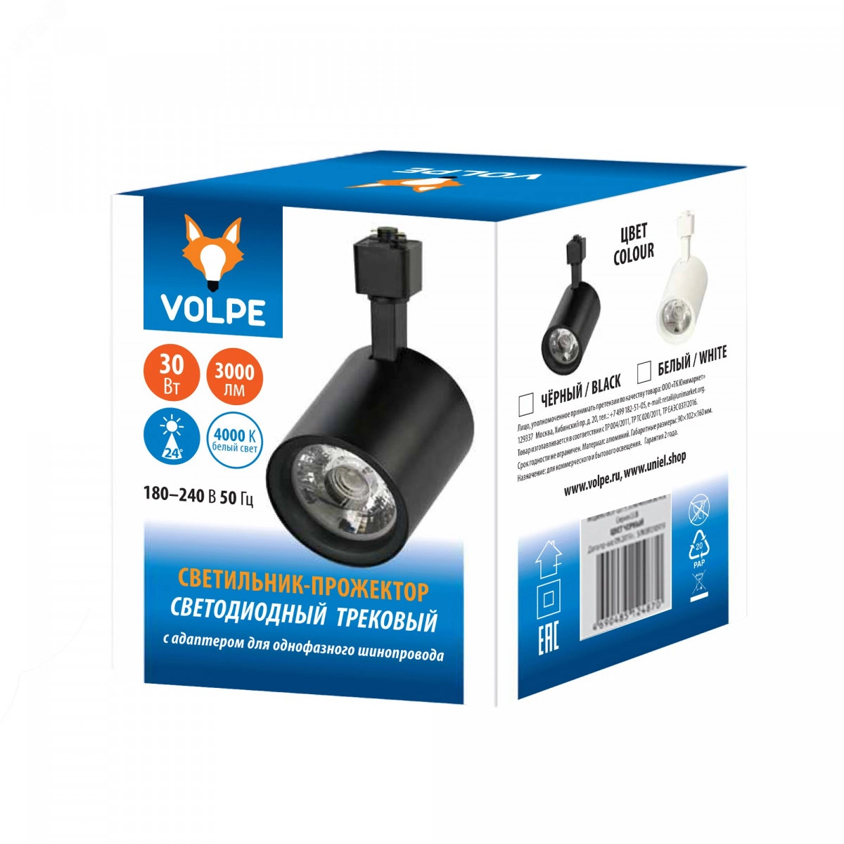 Полное описание: Светильник-прожектор ULB-Q275 30W/4000К BLACK светодиодный трековый 3000 Лм (4000К) Корпус черный
