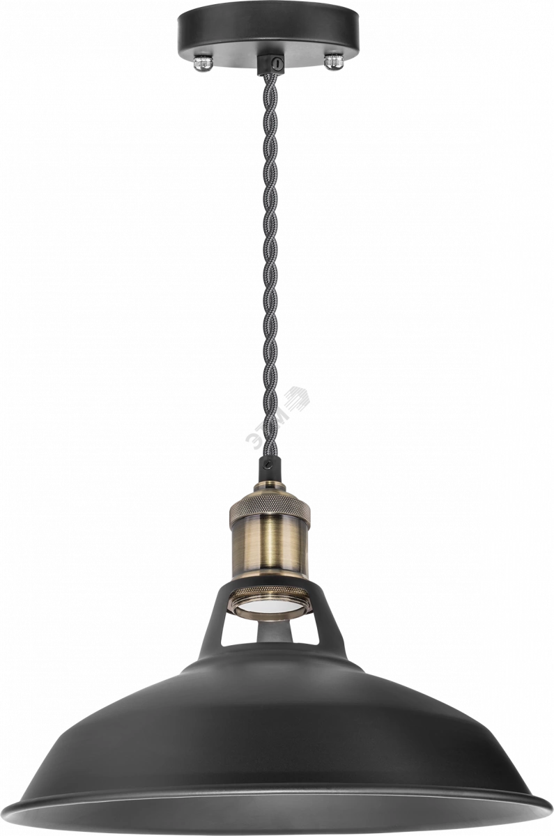Полное описание: Светильник с плафоном провод 1.5м Е27 декор черный/бронза