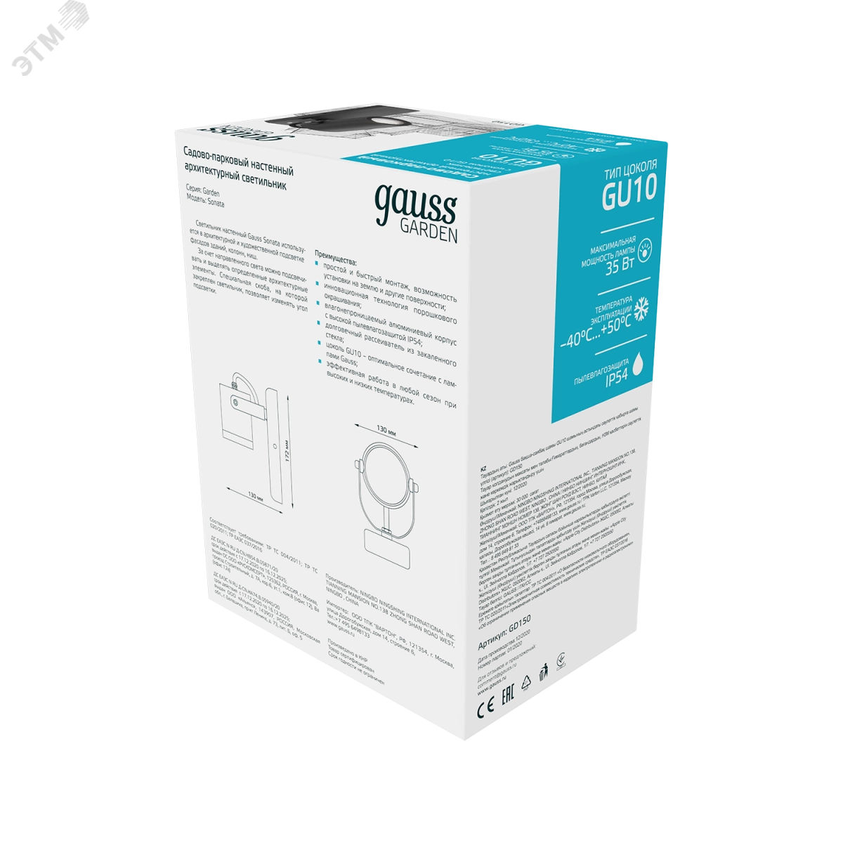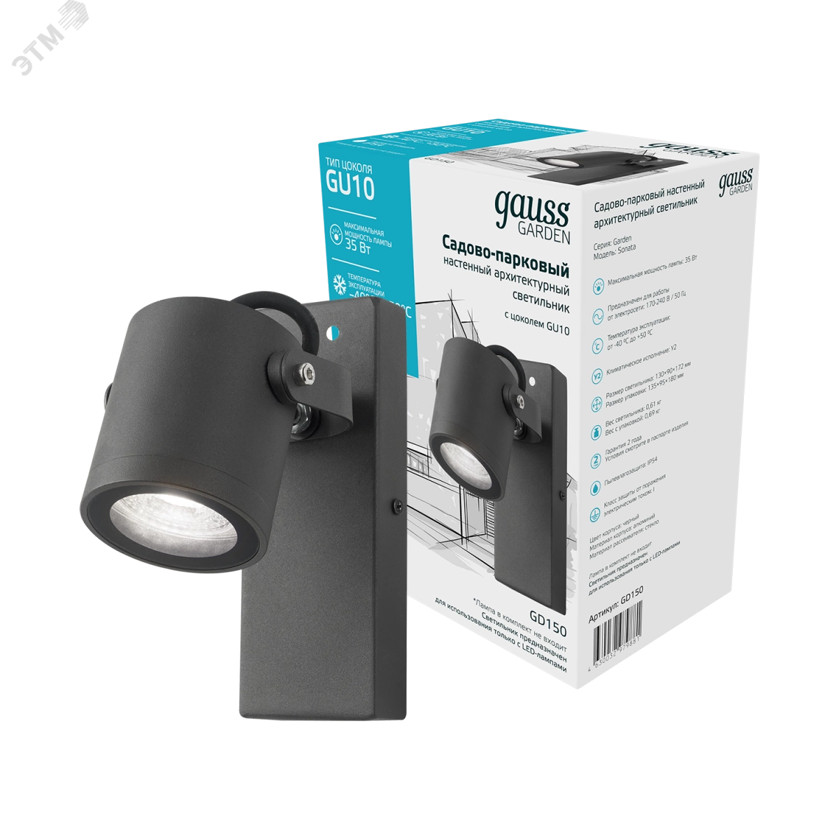 Светильник садово-парковый 1х35 Вт (max) 1хGU10 настенный архитектурный 220-240 В 50Hz IP54 175х90х130 мм Sonata Gauss
